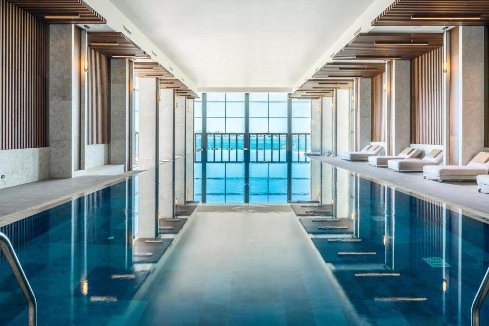Deluxe Swim-Up Room Sea View с гледка море, спалня, диван или две единични легла, тераса с достъп до открит басейн (отoпляем в зависимост от сезонните условия, площ 60-70 кв.м