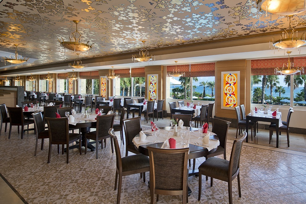 На разположение на гостите са основен ресторант и 5 а`ла карт ресторанта: китайски, рибен, италиански, турски, мексикански – с предварителна резервация, срещу заплащане),. Освежаващи напитки и закуски се поднасят в лоби бар, бар при басейна, бар на плажа, Dragon Bar (на плажа), Sea Bar, Cafe House, Кафе-сладолед, диско бар.