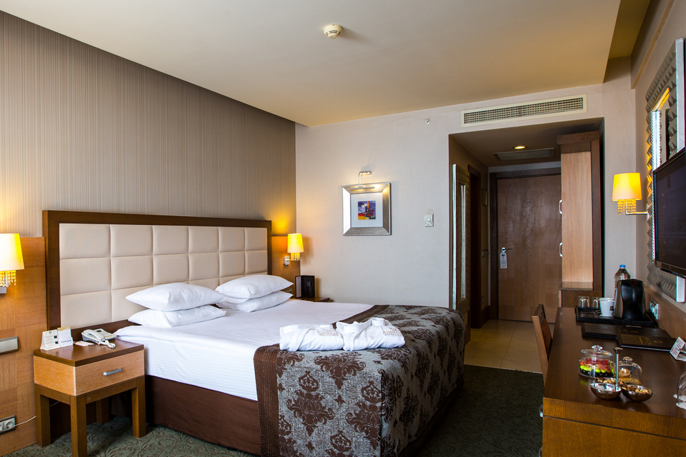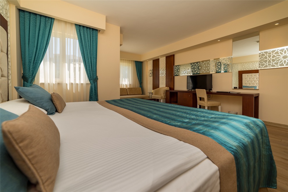 Хотелът се състои от 6-етажна основна сграда, сграда Beach House (до морето) и четири отделни 4-етажни сгради Terrace House (в близост до басейна за релакс),в които са разпределени 302 климатизирани стаи. Те са оборудвани с телевизор, минибар, сет за кафе и чай, директен телефон, Wi-Fi, баня с халат, чехли и сешоар, всяка от стаите има балкон. Ежедневно почистване на стаите.