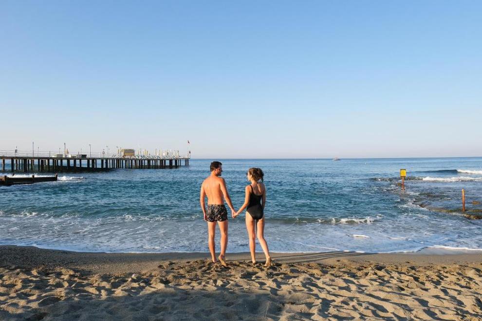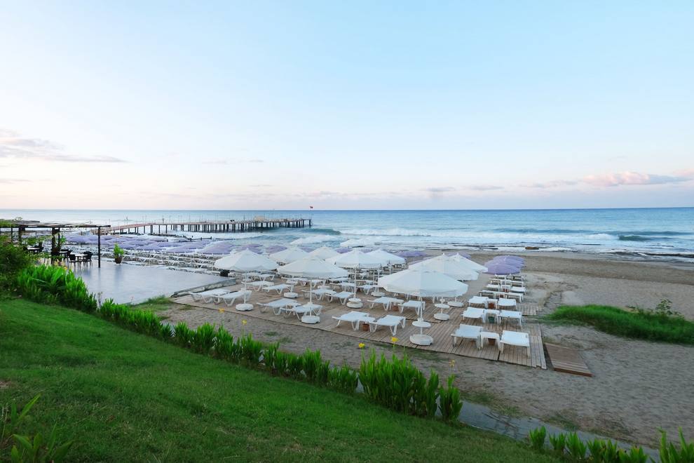 Собствен пясъчно-чакълест плаж. Между хотела и плажа преминава автомобилен път, има подземен проход. На разположение на гостите има три открити басейна и един закрит. Две водни пързалки за възрастни и две водни пързалки за деца.