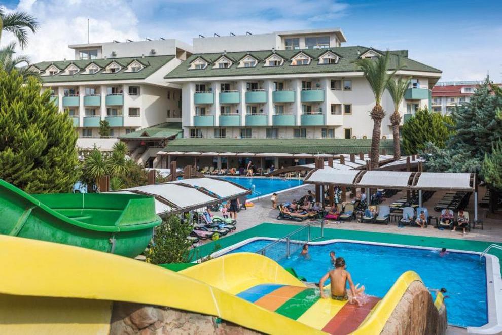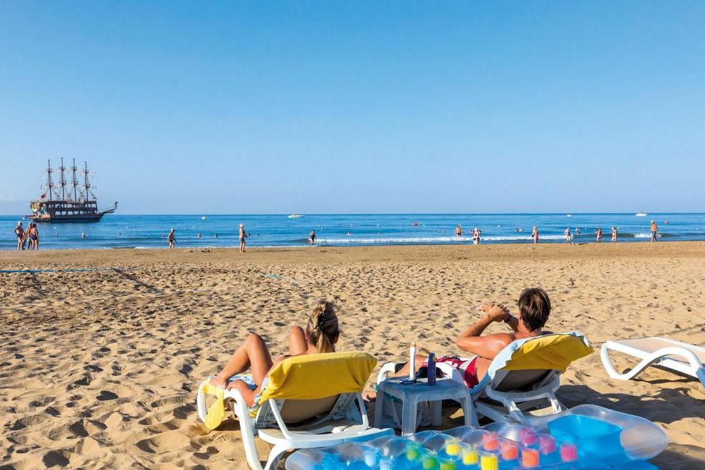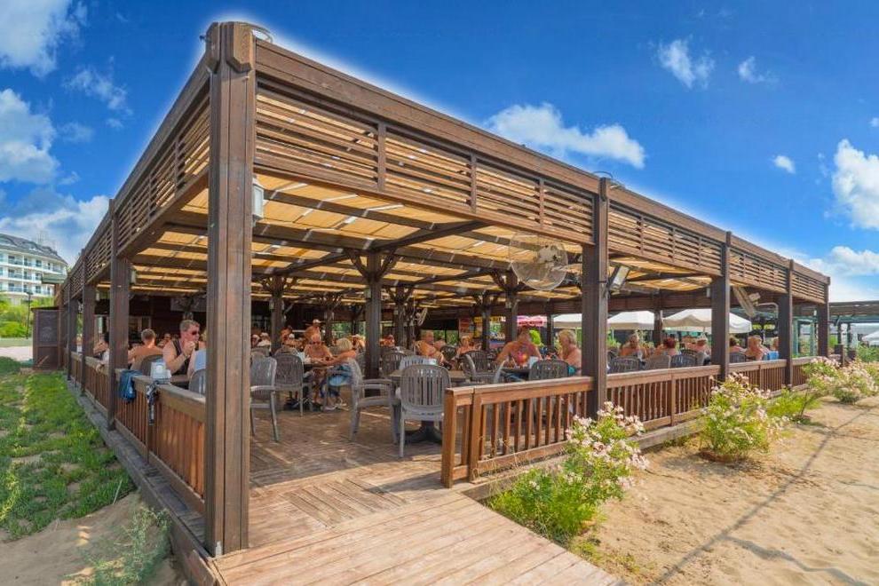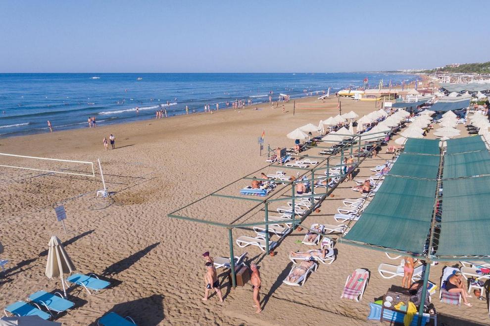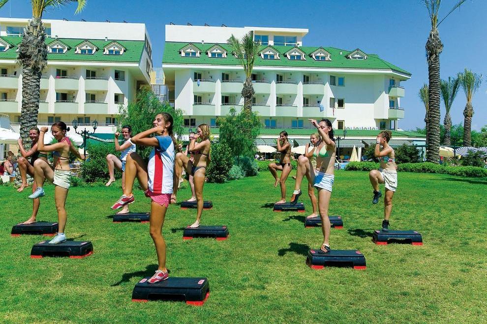 Собствена плажна пясъчна ивица на около 50 м от хотела. На плажа има снек ресторант и анимация. На разположение на гостите има открит басейн (активен басейн – 420 м² + 140 см), открит басейн (+16 релакс басейна) (200 м² + 140 см), детски басейн (25 м² - 40 см), басейн с водни пързалки (65 м² – 120 см) и закрит плувен басейн (през април и ноември) (95 м² – 140 см).