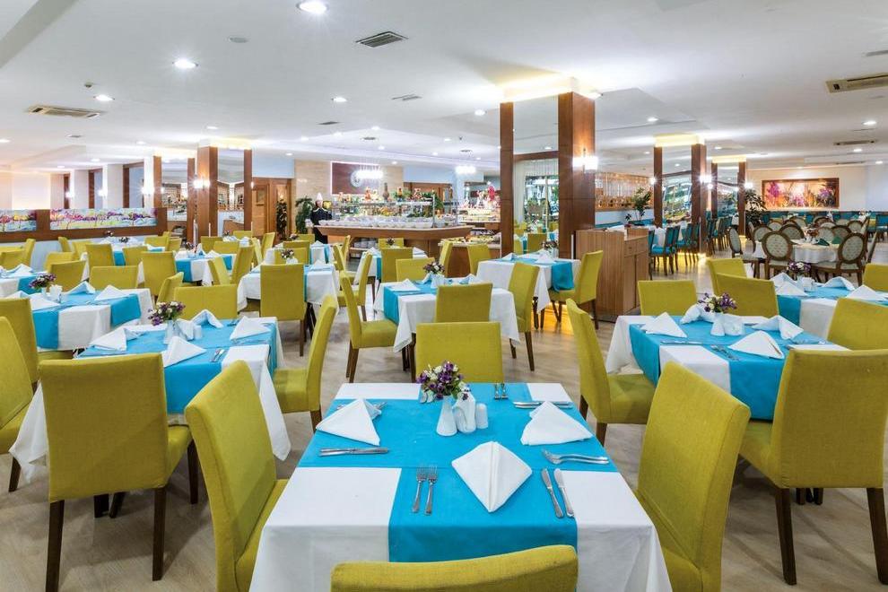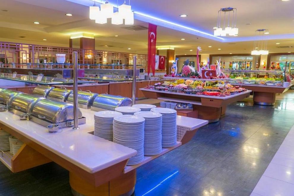 На разположение на гостите са основен ресторант, 2 ресторанта à la carte, 1 ресторант на плажа, 4 бара, 1 сладкарница. В основния ресторант се предлага закуска, обяд и вечеря на блок маса. Организират се тематични вечери три път седмично. Снек бар на плажа – от 00:00 до 15:00 часа. Гьозлеме бар на плажа и бар край басейна.