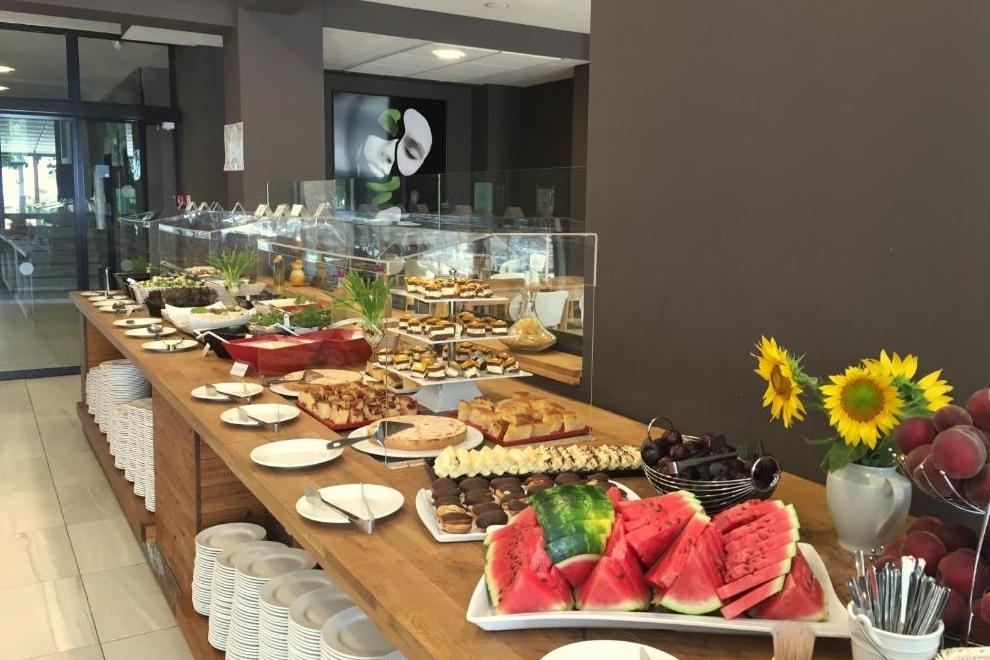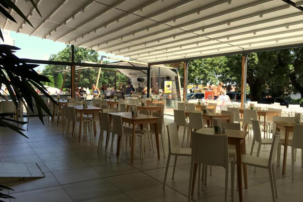 Ресторант с голяма тераса, лоби бар и бар край басейна.