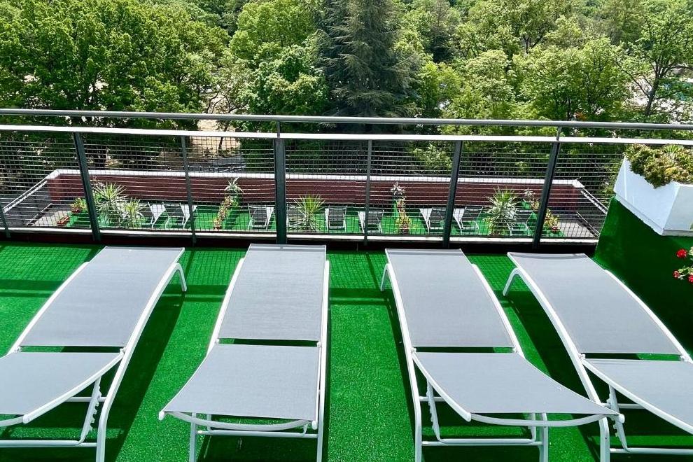 Хотелът разполага с частен плаж с шезлонги и чадъри. На разположение на гостите има открит басейн и ефектно разположени тераси за слънчеви бани.