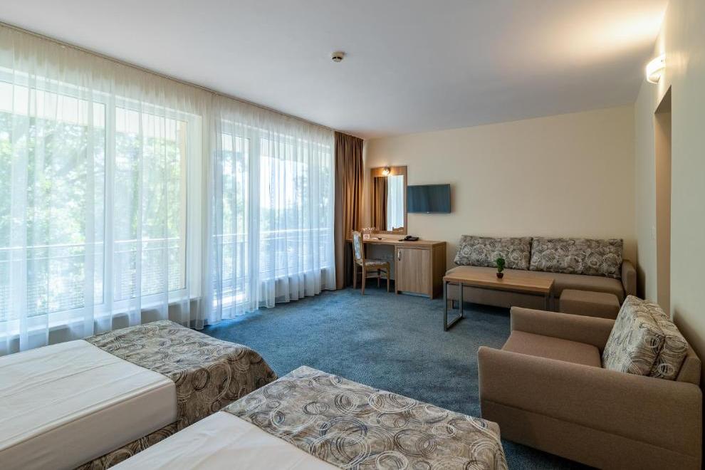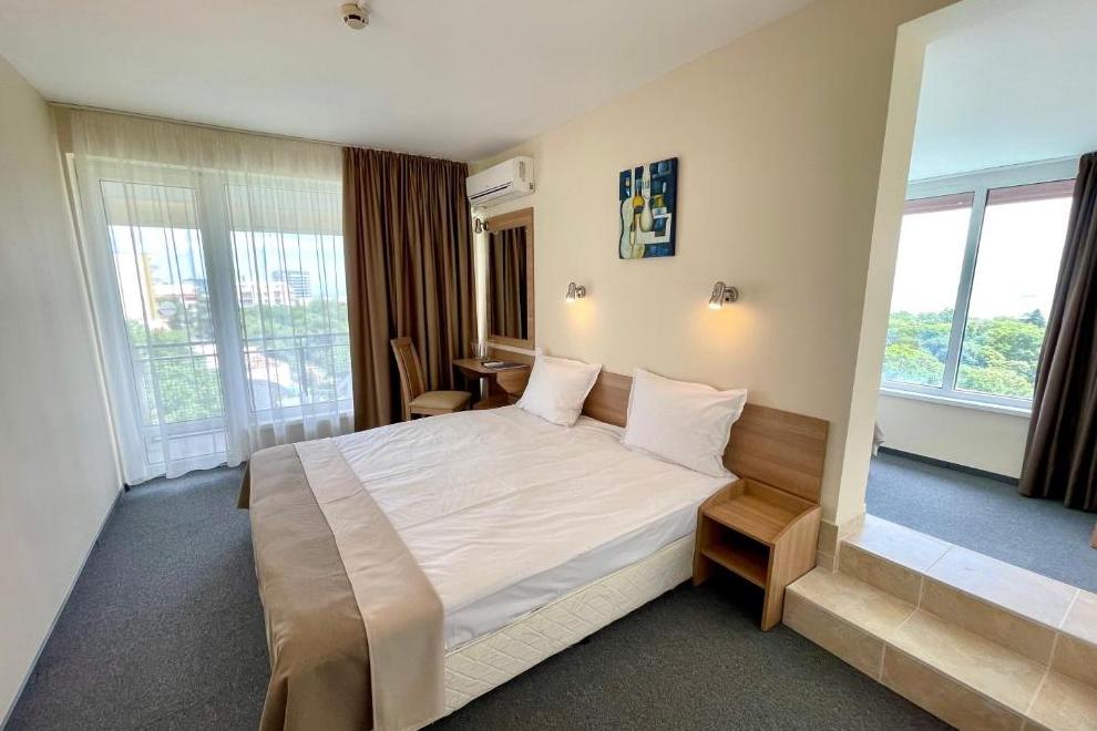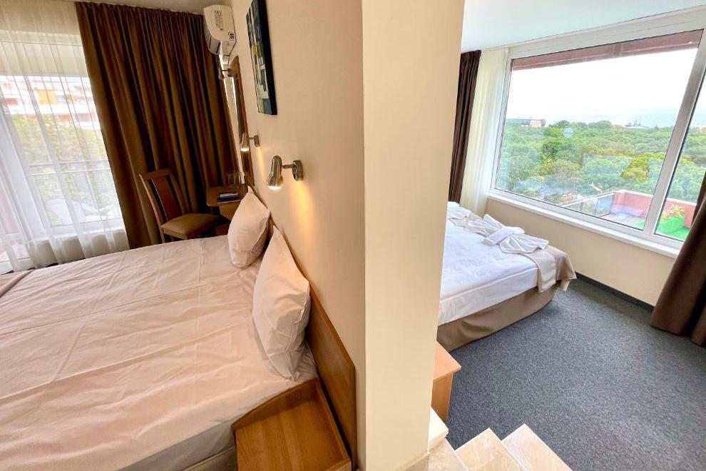 Хотелът е разположен сред зеленина, близо до частен плаж в Златни пясъци.