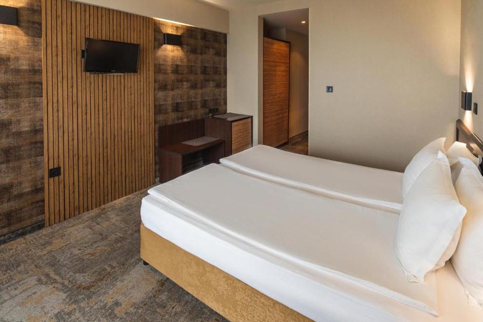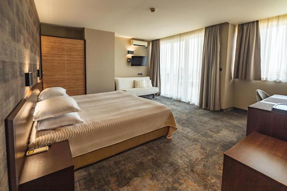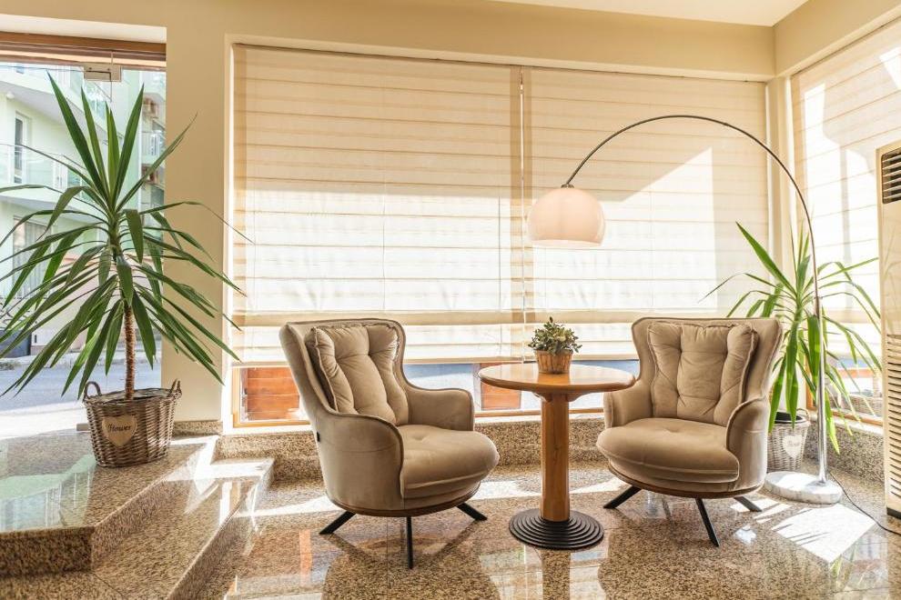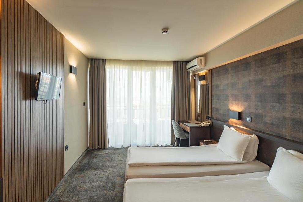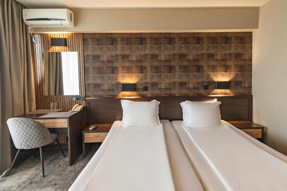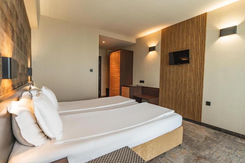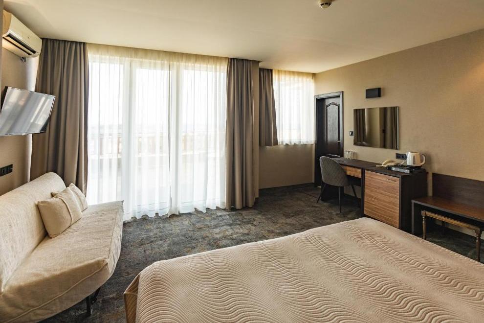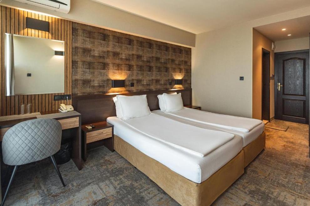 Хотелът посреща гостите си в 25 двойни стаи, 2 студия и апартамент всички оборудвани с климатик, минибар, телевизор, луксозен санитарен възел, тераса.
