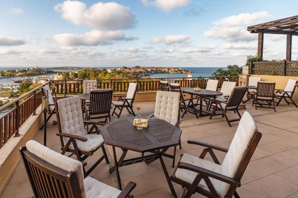 Уютен ресторант с панорамна тераса и собствена атмосфера. на разположение на гостите има и бар.