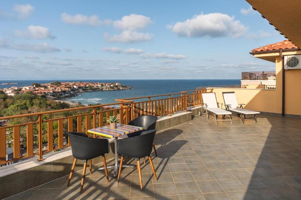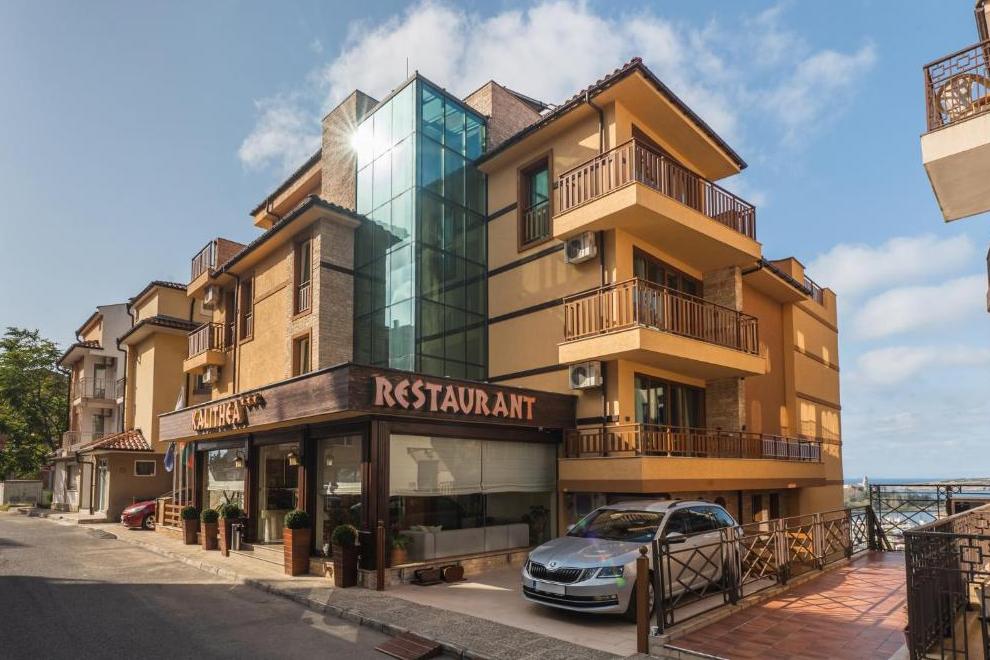 Разположен на хълм в близост до централния плаж на Созопол, от хотел „Калитея” се разкрива приказна гледка към морето, стария Созопол, пристанището и остров „Св. Иван”. Хотелът се намира на 200 м до центъра, 300 м до стария Созопол, 300 м до централния плаж. Наблизо е автогарата.