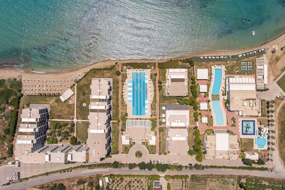 Хотелът има собствен пясъчнo-чакълест плаж и платформа. На разположение на гостите има 3 открити басейна (неотопляеми), 1 закрит басейн с прясна вода, 125 кв.м, 3 водни пързалки за възрастни и 2 за деца (неотопляеми). Чадъри, шезлонги, плажни кърпи на басейна и на плажа се ползват безплатно.