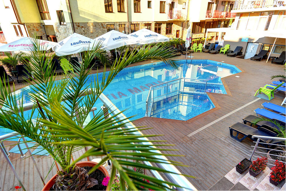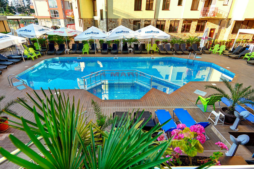 Хотелът се намира в южната част на курорта Слънчев бряг, на 280 метра от кристално чистото море и на 5 минути пеша от центъра на курорта. Модерният имот е в непосредствена близост както до плажа, така и до центъра на курорта.