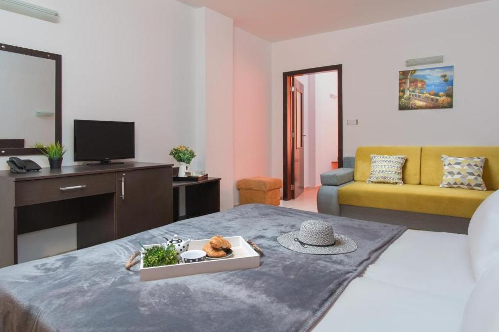 Хотелът предлага настаняване в просторни и комфортни стаи, идеални за семейства с деца или млади двойки. В стаите има сателитна телевизия, телефон, минибар, баните са оборудвани със сешоар.