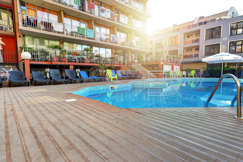 Плажът е на 250 м от хотела, на разположение на гостите има открит басейн. Шезлонги и чадъри при басейна се ползват безплатно.