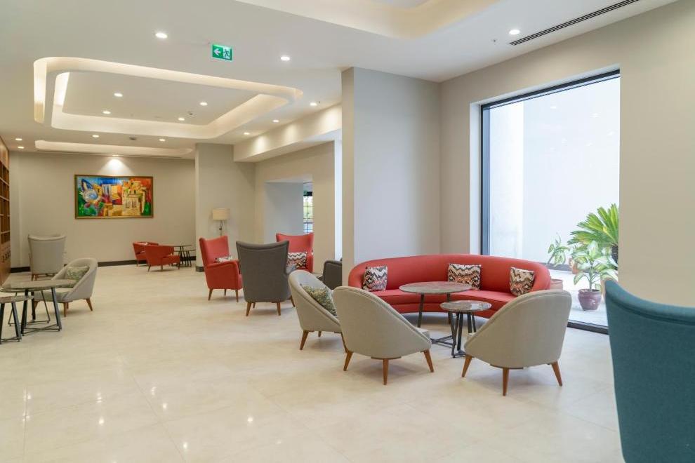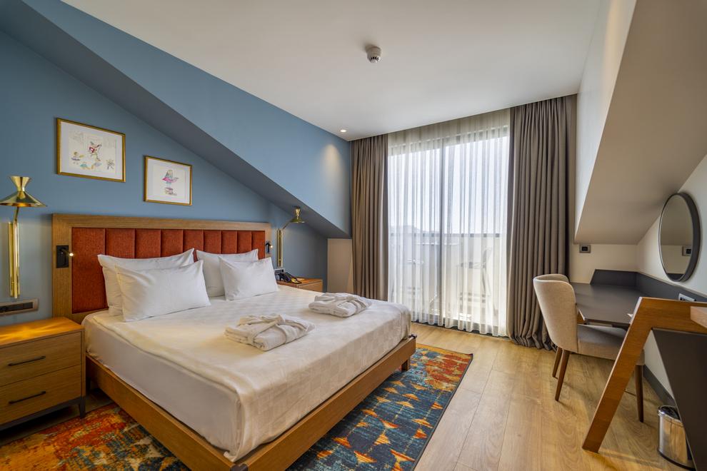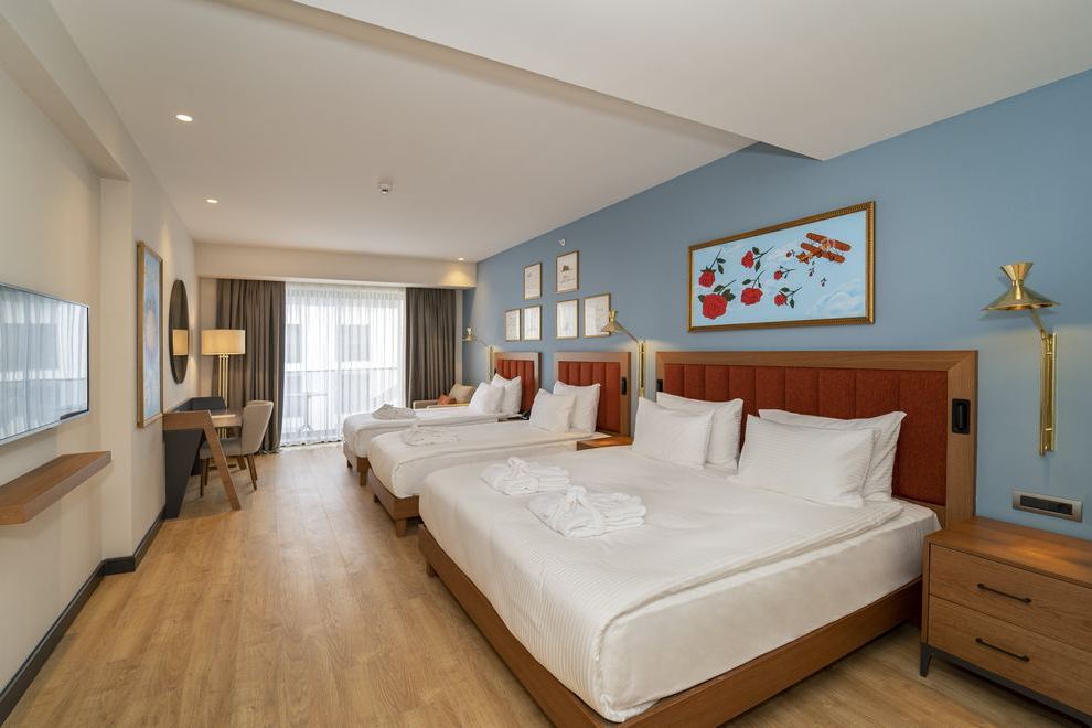 Състои се от три 5-етажни сгради: блок А - основна сграда, блок Б и блок С, има асансьори. В тях са разпределени 149 климатизирани стаи, оборудвани с телефон, телевизор, минибар, сейф, баня с душ, сешоар, балкон (без икономичните стаи), безплатен Wi-Fi. Стаите се почистват ежедневно, спалното бельо се сменя три пъти седмично.