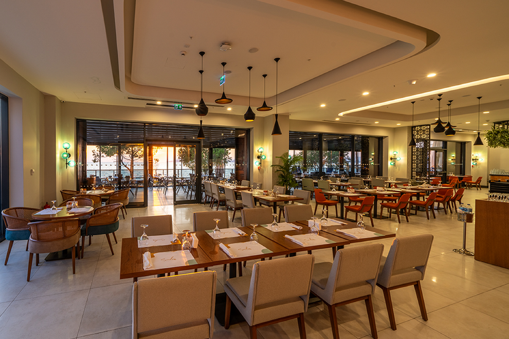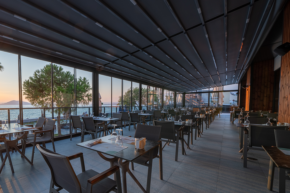 На разположение на гостите са основен ресторант и два а`ла карт ресторанта: рибен и италиански. Освежаващи напитки и закуски се поднасят в лоби бар (работи денонощно), Lu Pool Bar и Vertex Bar.