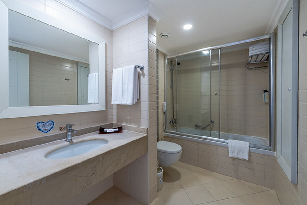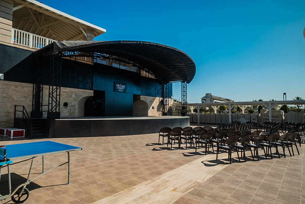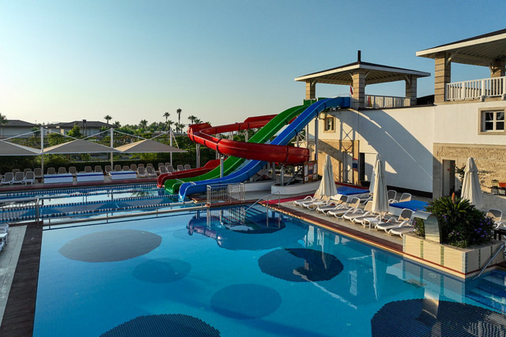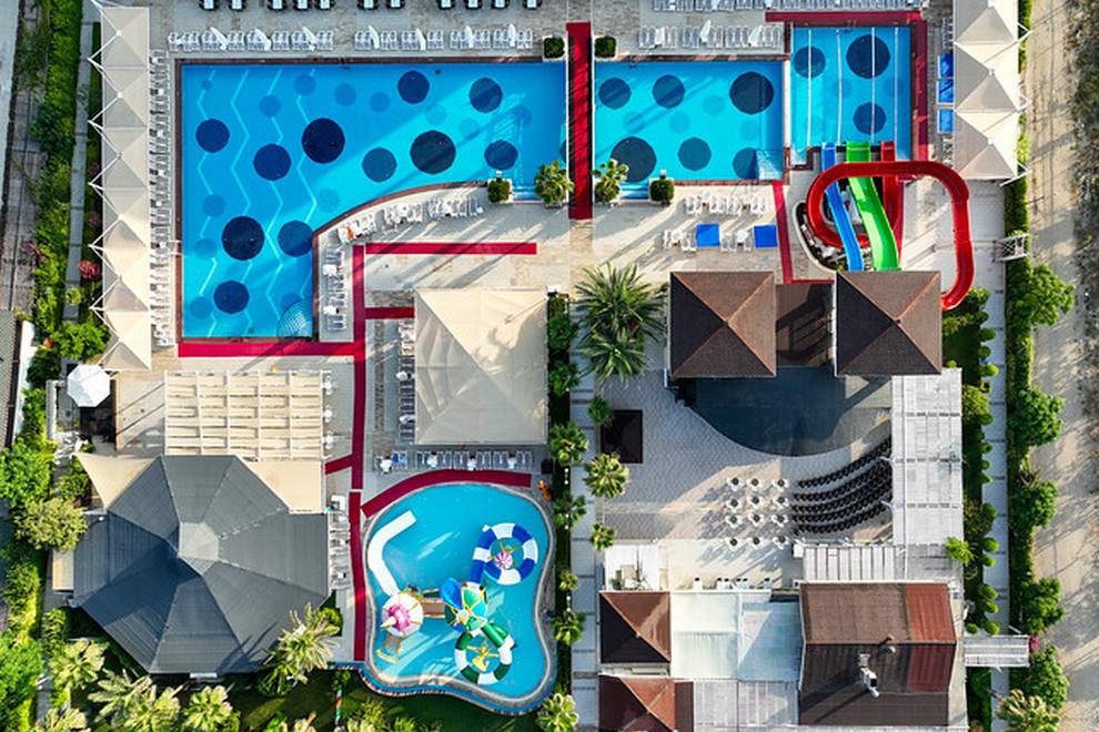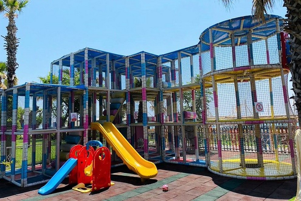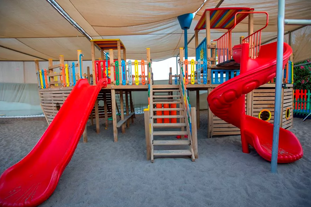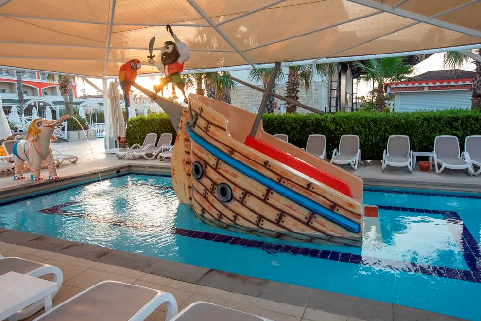 Собствен пясъчно-чакълест плаж, 2 открити басейна, 1 закрит, 3 водни пързалки. Чадъри, шезлонги и плажни кърпи на плажа и при басейна се ползват безплатно.
