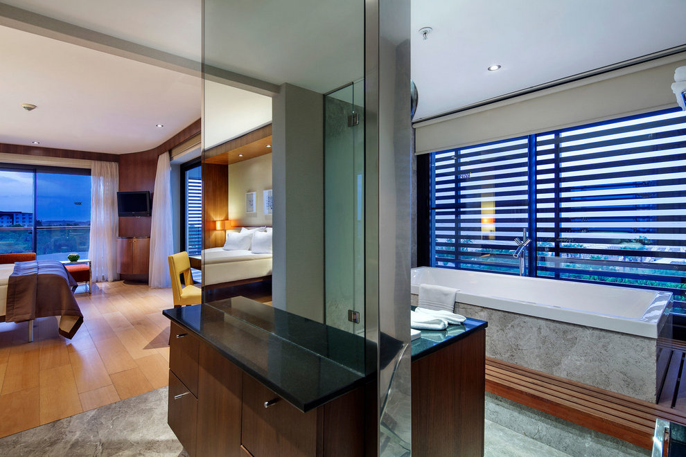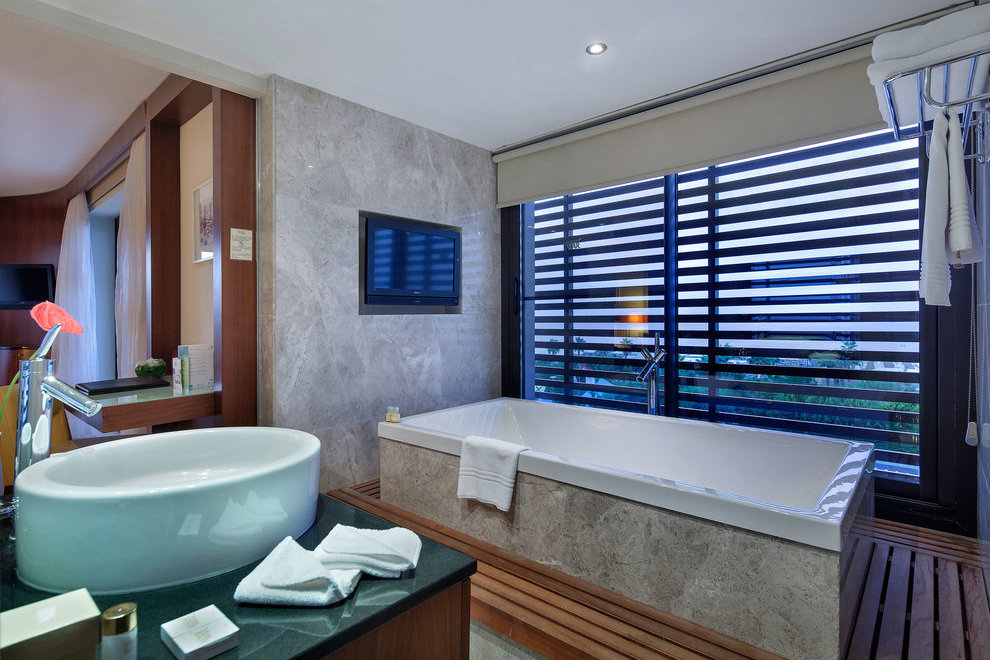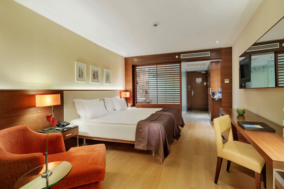 Хотелът се състои от 4 сгради, в които са разпределени 236 климатизирани стаи: 188 Standard (макс. 3 лица, 35 кв.м); Standart partial sea view (с изглед към морето, макс. 3 души, 35 кв.м); 20 Deluxe room (баня, оборудвана с прозорец с изглед към морето, макс. 3 души, 35 кв.м); 21 Junior Suite (тераса с шезлонги, макс. 3 души, 50 кв.м). Стаите са оборудвани с телевизор, телефон, минибар, сет за чай/кафе, сейф, самостоятелна баня, сешоар, Wi-Fi , балкон. Стаите се почистват ежедневно, смяна на спалното бельо - два пъти седмично.