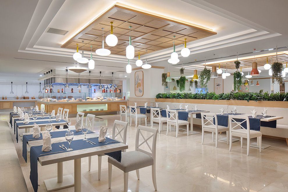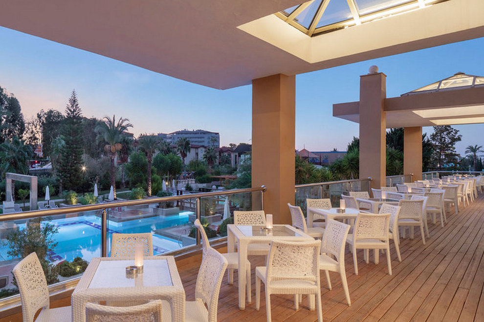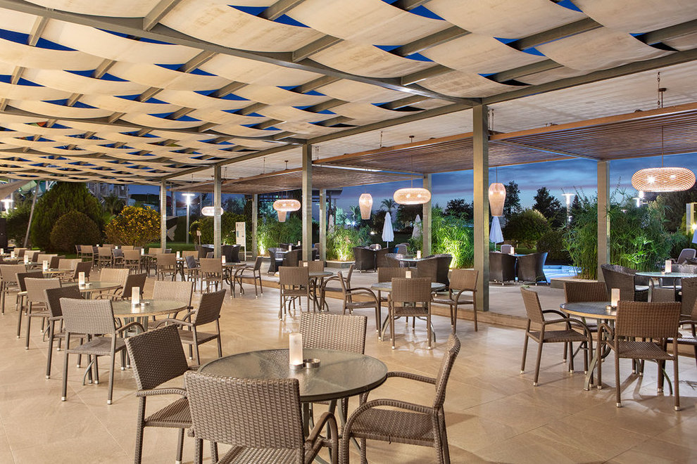 На разположение на гостите са основен ресторант и а`ла карт ресторант, в който се поднася османска и анталийска кухня. Освежаващи напитки и закуски се поднасят в три бара - лоби бар, бар при басейна и бар на плажа.