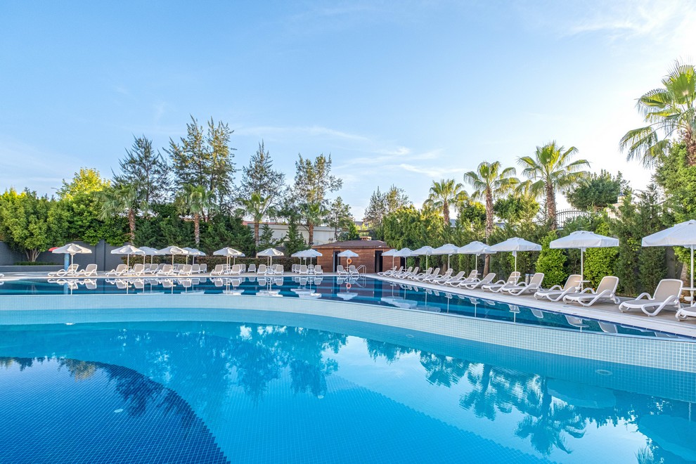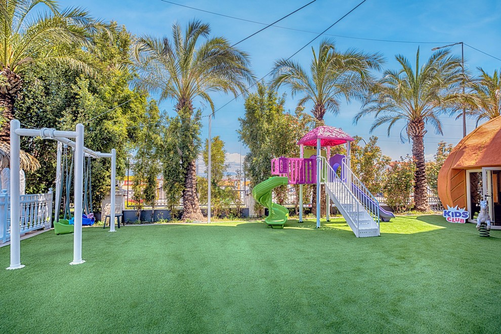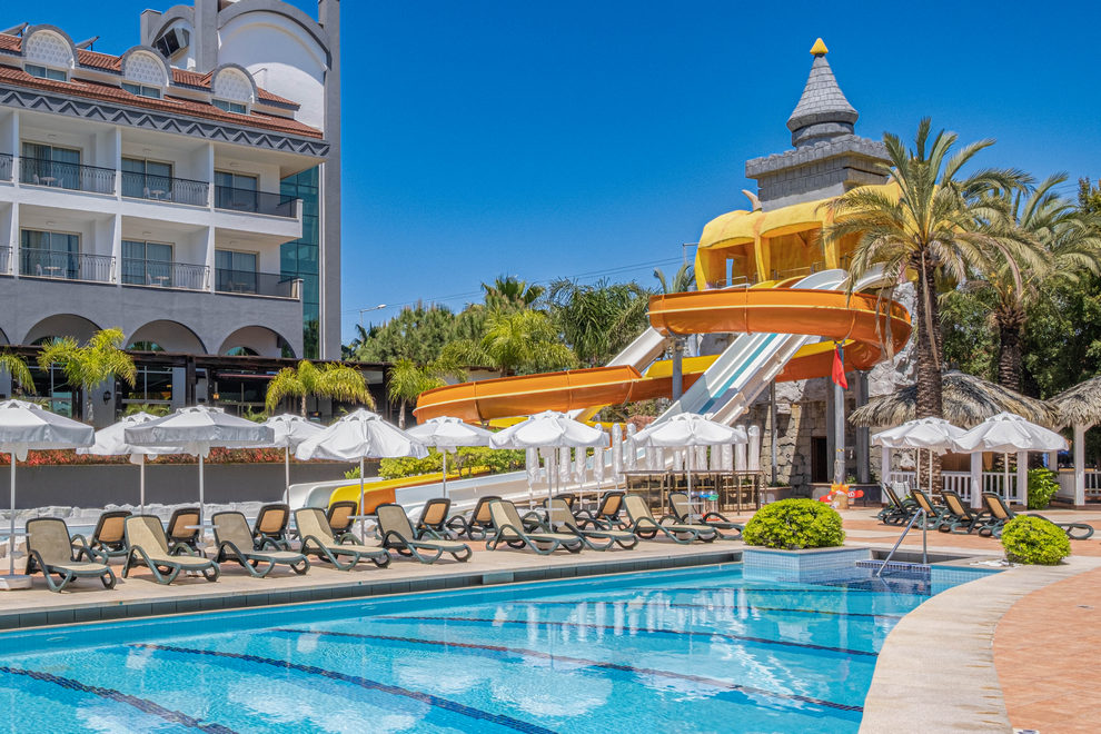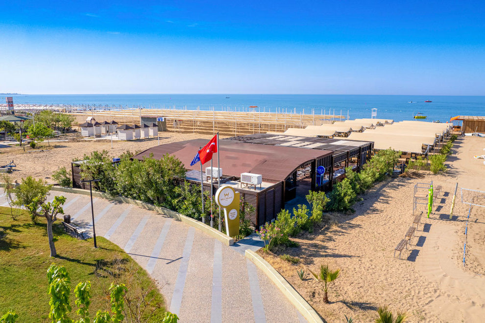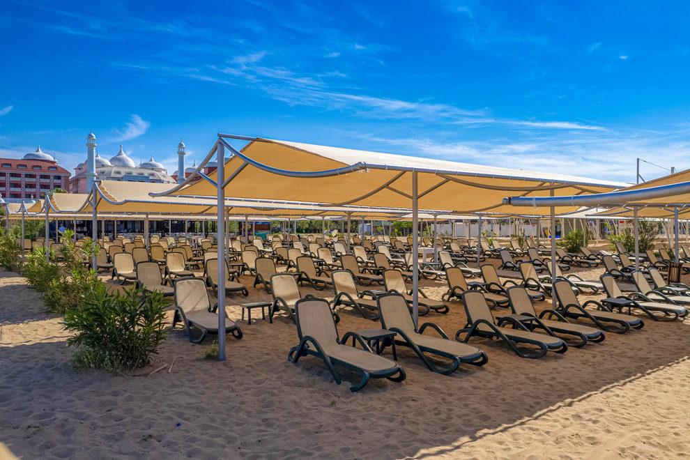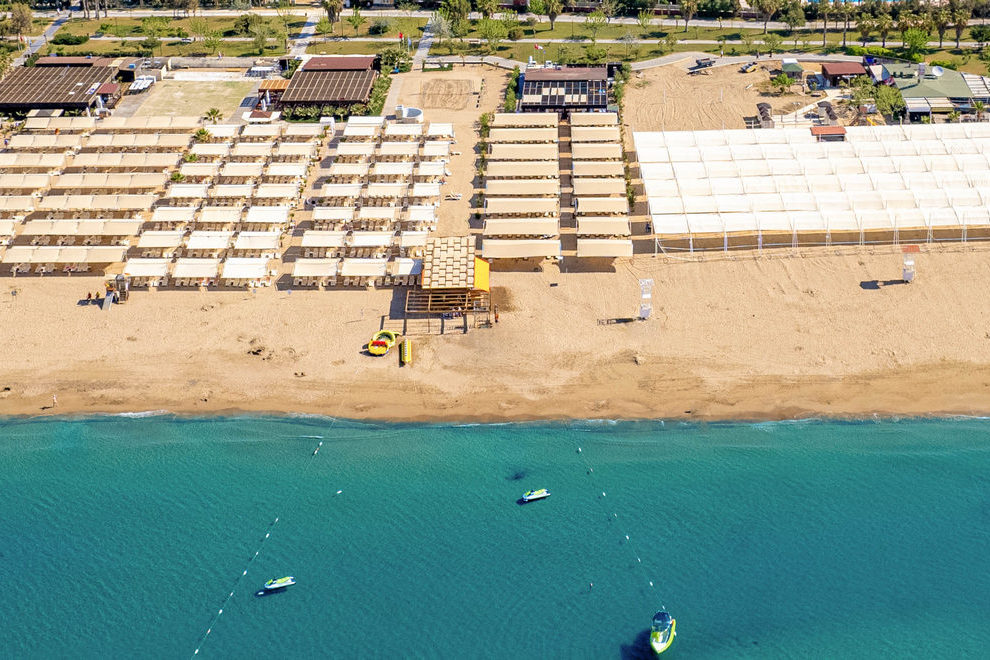 Собственият пясъчен плаж се намира на 400 м от хотела. На разположение на гостите има 4 открити един закрит басейн. 4 водни пързалки.