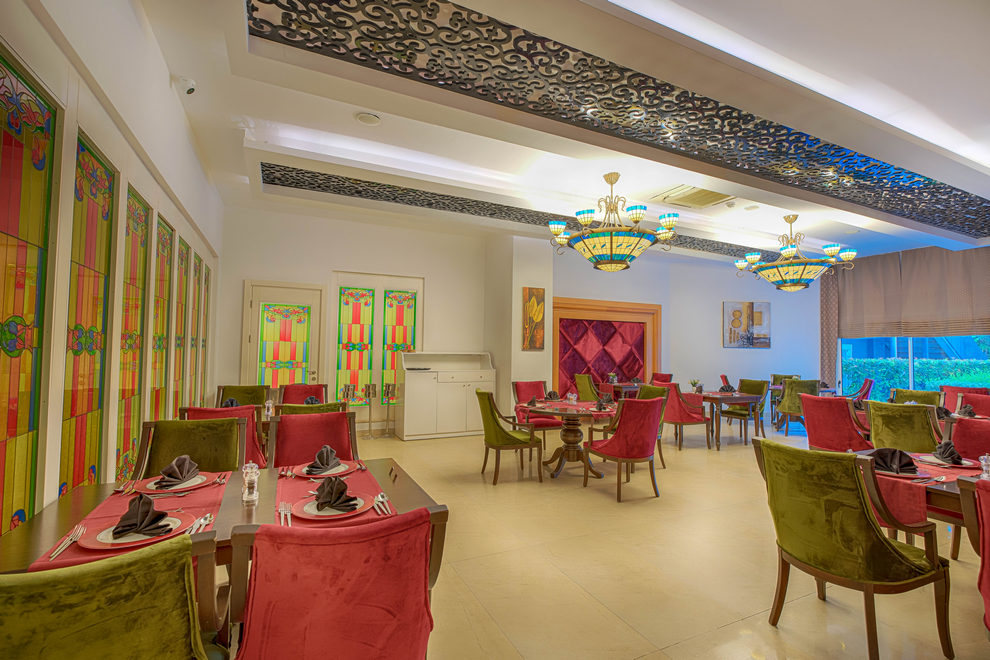 На разположение на гостите са основен ресторант и три а`ла карт ресторанта: рибен, турски и италиански. Освежаващи напитки и закуски се поднасят в 4 бара.