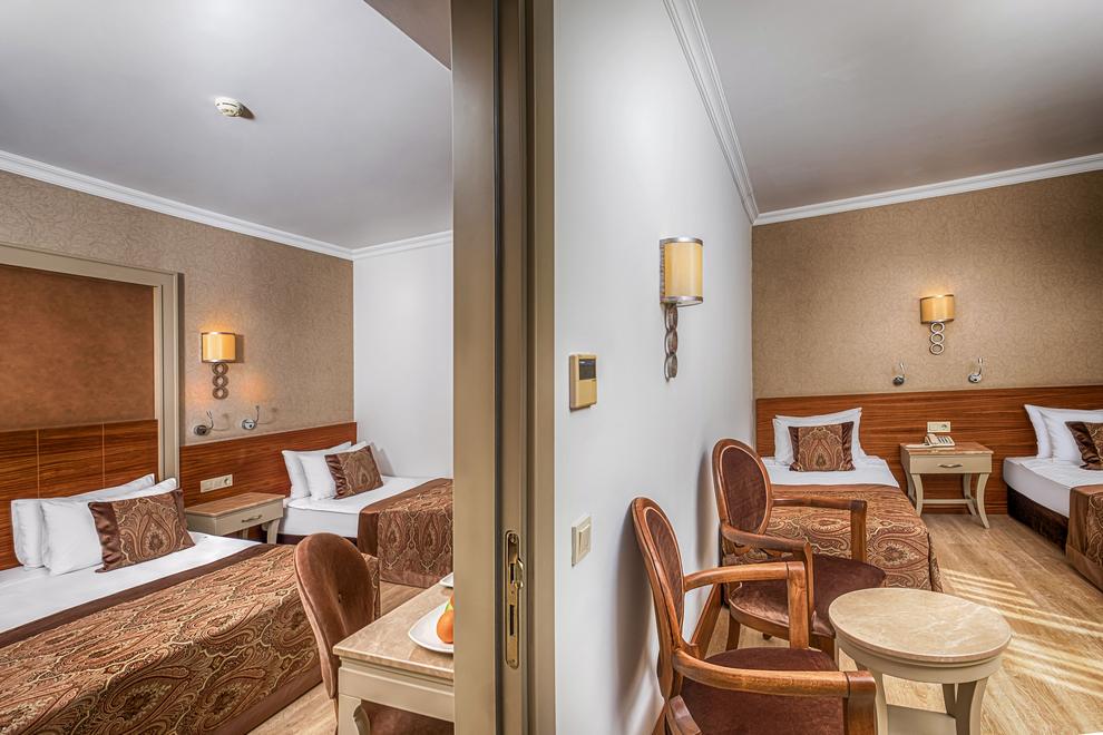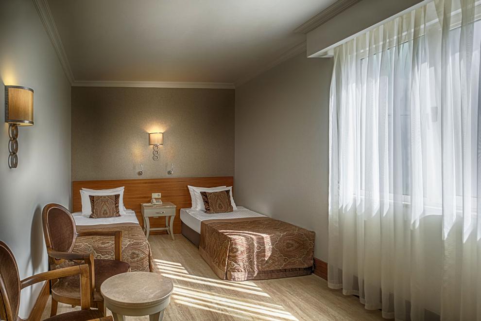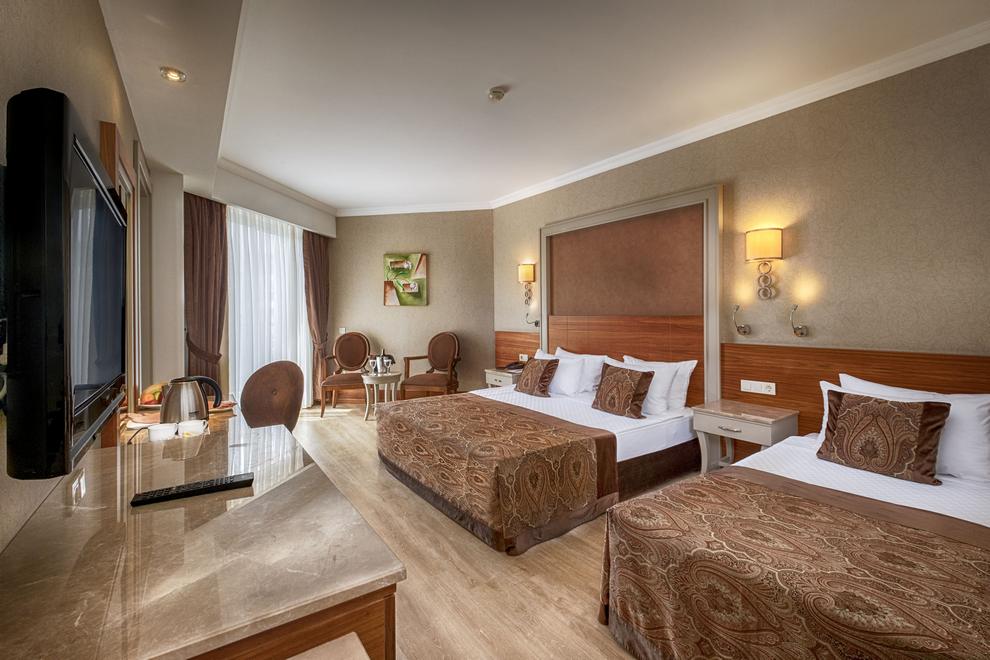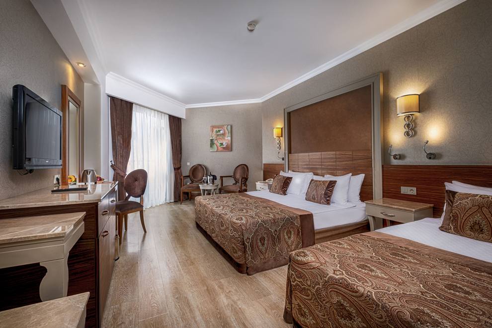Хотелът се състои от 5 четириетажни сгради (има асансьори), в които са разпределени 325 климатизирани стаи. Те са оборудвани с телефон, телевизор, сейф, минибар, самостоятелна баня с душ, сешоар, Wi-Fi, балкон. Ежедневно почистване на стаите, смяна на спалното бельо - веднъж на три дни.