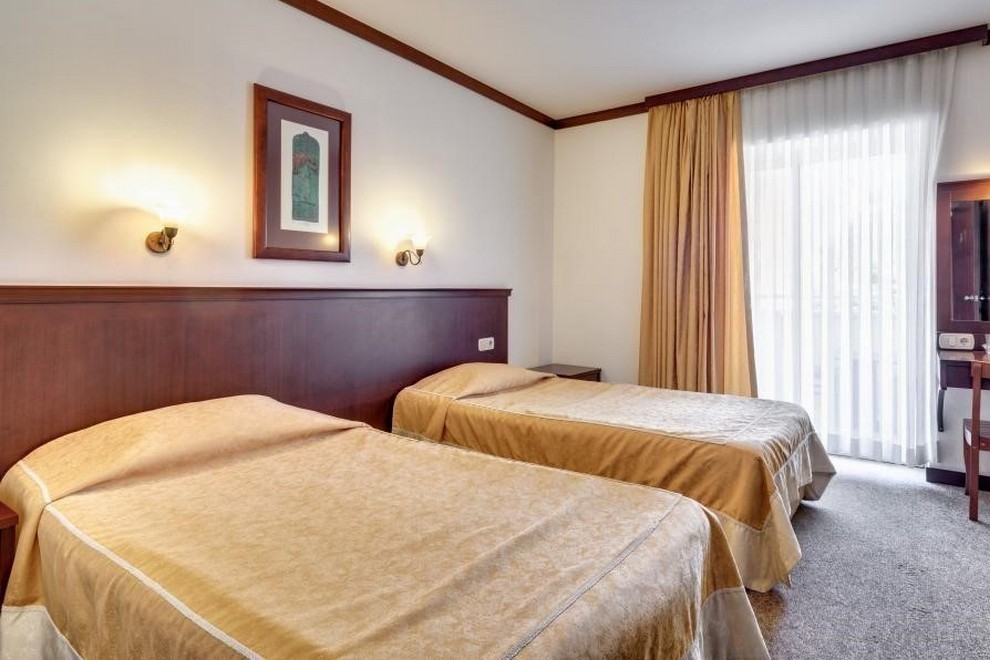 Хотелът се състои от три 4-етажти корпуса (няма асансьори), в които са разпределени сто стаи, от които 78 Standard Room (18 кв.м) и 12 Comfort Room (18 кв.м). Те са обзаведени с телевизор със сателитна телевизия, телефон, сейф (платено), климатик, минибар, баня с душ и сешоар, Wi-Fi (платно), балкон. Почистването на стаите е ежедневно, а смяната на спалното бельо е 2 пъти седмично.