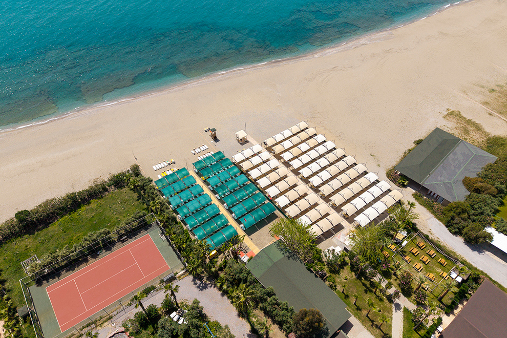 Собствен, пясъчно-чакълест плаж, дълъг 100 м, на около 150 м от хотела. Плажът има сертификат Син флаг за чистота. На разположение на гостите има открит басейн, басейн с две водни пързалки, детски басейн. Чадъри, шезлонги плажни кърпи на плажа и при басейна се предоставят безплатно.