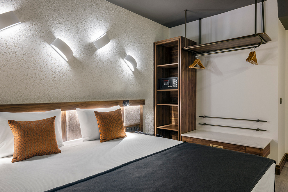 Хотелът се състои от една 6-етажна сграда (4 асансьора), в която са разпределени 327 климатизирани стаи (3 за инвалиди), от които:
