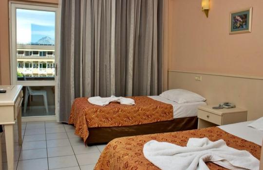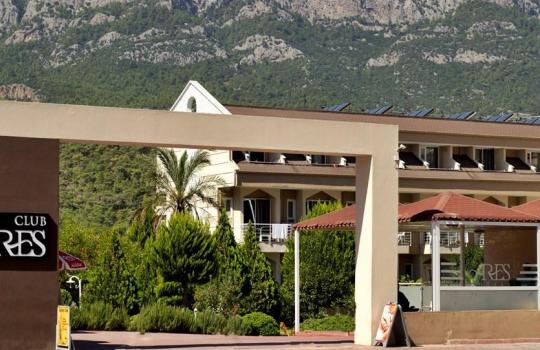 Описание Местоположение: Club Ares Hotel се намира на 50 км от летището на Анталия, в центъра на курортното селище Кемер, на 450 м от на брега на морето. Настаняване: Club Ares Hotel разполага с общо 88 стаи за гости, разположени в две триетажни сгради. Всички стаи са оборудвани с климатик, сателитна TV, сейф (платено), телефон, баня с душ, сешоар, балкон, на пода – теракот. Стаите се почистват всеки ден, спалното бельо се сменя два пъти седмично. Храна и напитки: Club Ares Hotel разполага с един основен ресторант с открита и закрита секции, бар на басейна. База на изхранване: Концепцията All Inclusive – закуска, късна закуска, обяд, вечеря, нощна закуска – концепцията действа от 10:00 до 21:30 часа. Включва безалкохолни и алкохолни напитки местно производство (водка, дин, вино). Срещу заплащане се предлагат: вносни алкохолни напитки, фрешове, турско кафе, бутилирана бира, наргиле. Удобства и забавления: Club Ares Hotel предлага възможност за отдих и развлечения на 1 открит плувен басейн за възрастни, SPA център (сауна, турска баня, стаи за масаж). Wi-Fi интернет е наличен в публичните зони на хотела срещу допълнително заплащане. В близост до хотела е наличен безплатен обществен паркинг. Плаж: Club Ares Hotel се намира на 450 м от обществен пясъчно-чакълест плаж. Вход към плажа – чакъл. Транспорт до плажа – срещу доплащане. Чадъри и шезлонги на басейна – безплатно, на плажа – срещу допълнително заплащане.