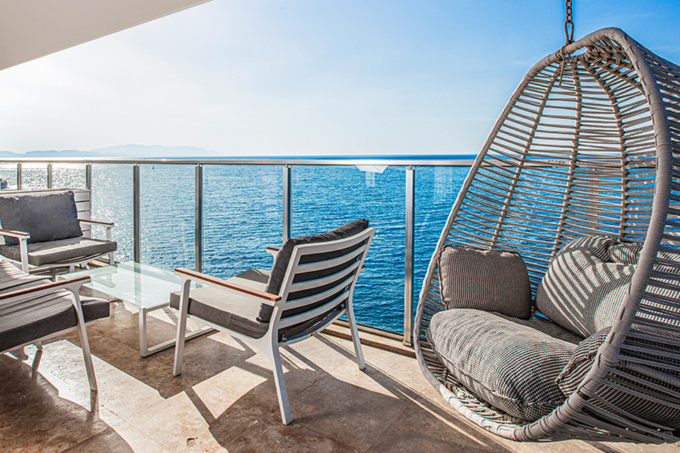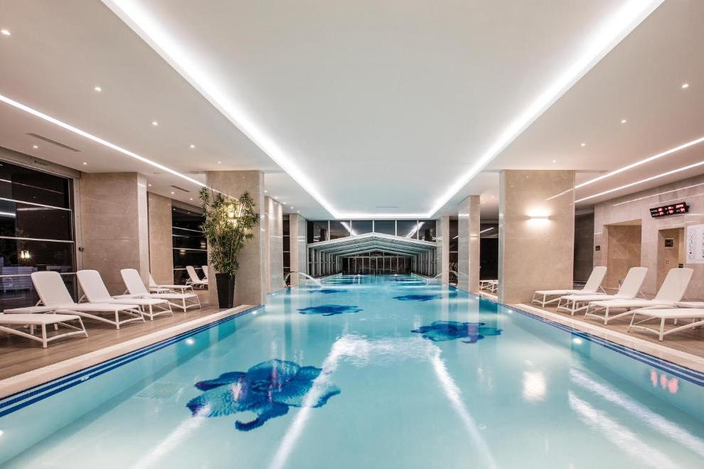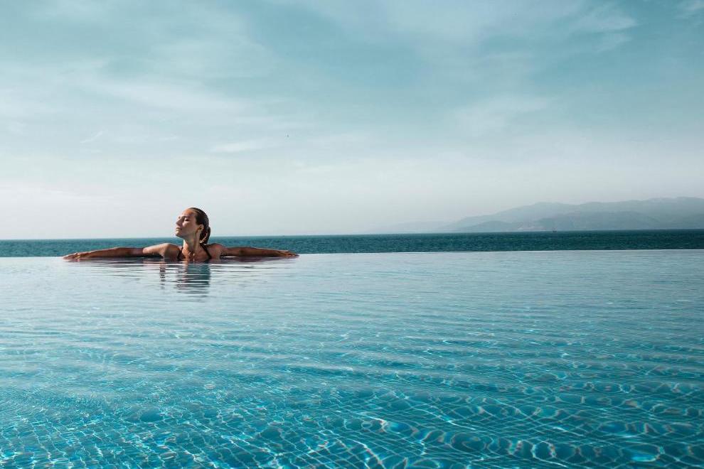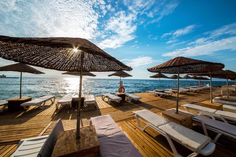 Собствен, малък пясъчно-чакълест плаж и платформа, инфинити басейн с панорамен изглед към Егейско море, закрит басейн. На плажа на хотела има съоръжения за водни спортове и дайвинг център. Чадъри, шезлонги и плажни кърпи се ползват безплатно.