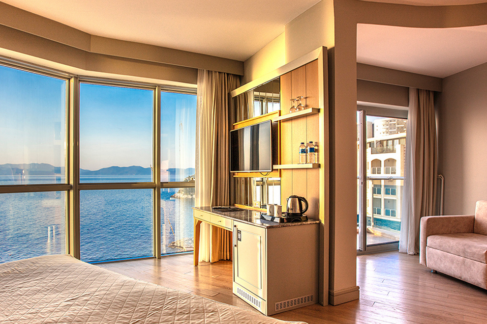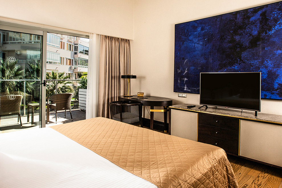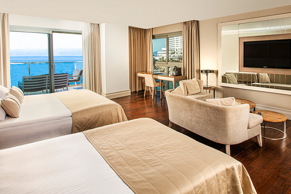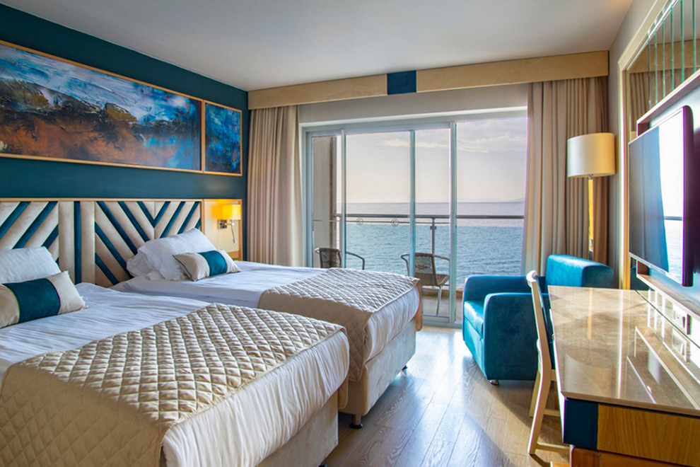 Хотелът посреща гостите си в 218 климатизирани стаи, от които 195 супериор стаи (147 стаи с изглед море, 16 с изглед градина, 31 с частичен изглед море - 28-39 кв.м), 7 фамилни стаи (без балкон - 31 кв.м), 7 делукс стаи (38-53 кв.м), 8 суита (с джакузи - 45-75 кв.м).
