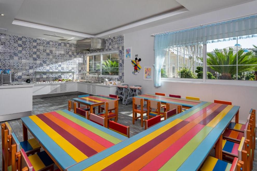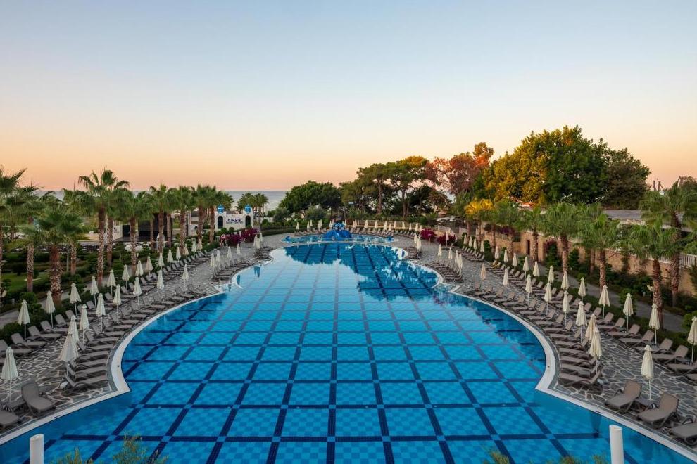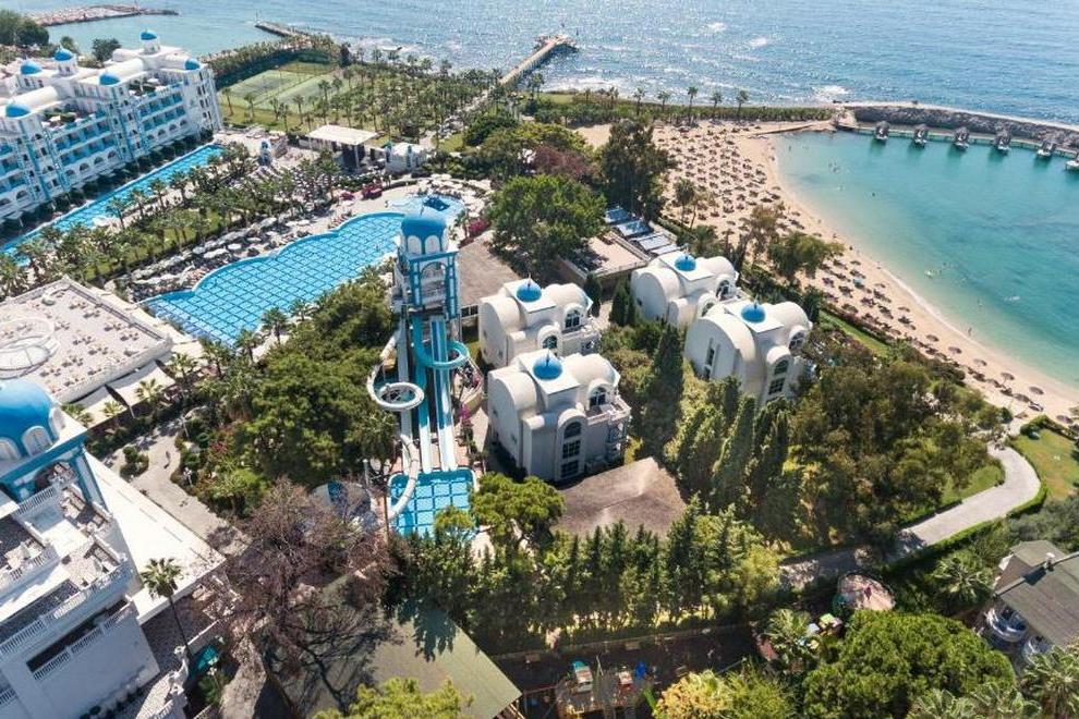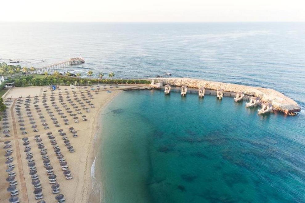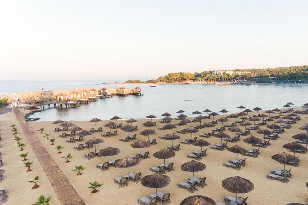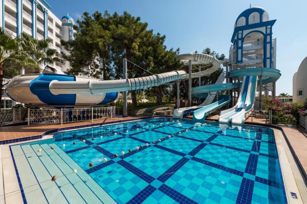 Собствен пясъчен плаж и бар на плажа, 3 открити басейна, закрит басейн, 5 водни пързалки. На плажа и при басейна чадъри, шезлонги, матраци и плажни кърпи се предоставят безплатно.
