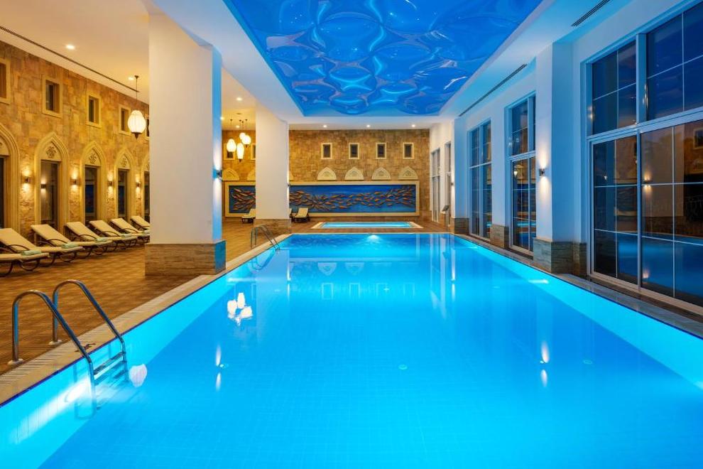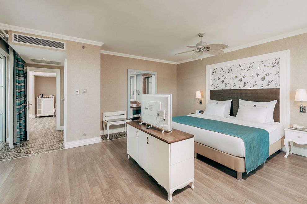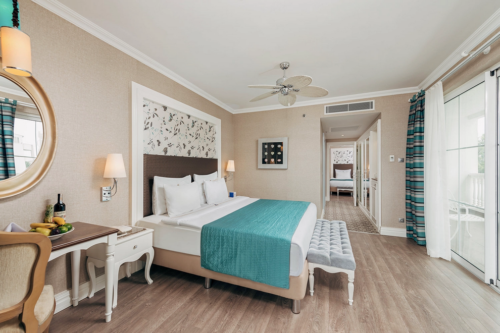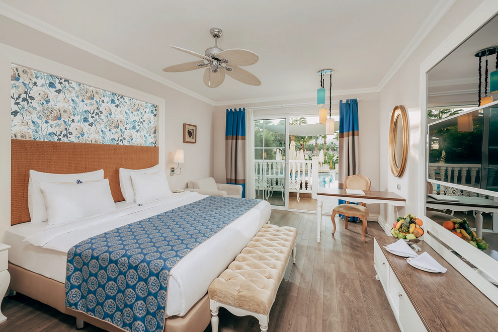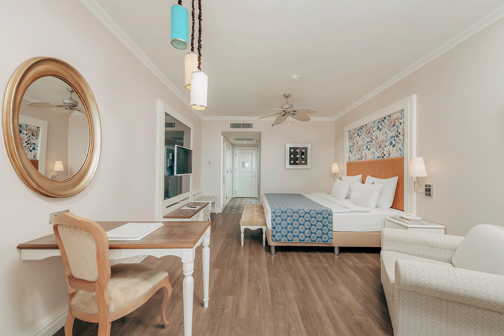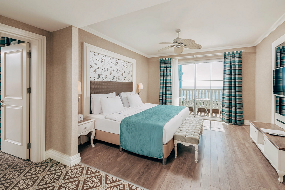 Собствен пясъчен плаж и бар на плажа, 3 открити басейна, закрит басейн, 5 водни пързалки. На плажа и при басейна чадъри, шезлонги, матраци и плажни кърпи се предоставят безплатно.
