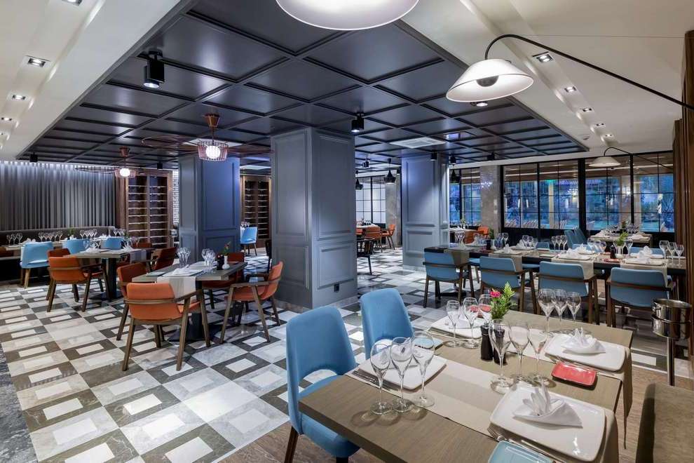 На разположение на гостите са основен ресторант и 5 а`ла карт ресторанта: Kalamata (средиземноморска кухня), Ikebana (азиатска кухня), Steak house, Gusto ресторант (италианска кухня), Begonvil (интернационална кухня) и Diamond VIP Lounge (интернационална кухня). Освежаващи напитки и закуски се сервират в 8 бара.