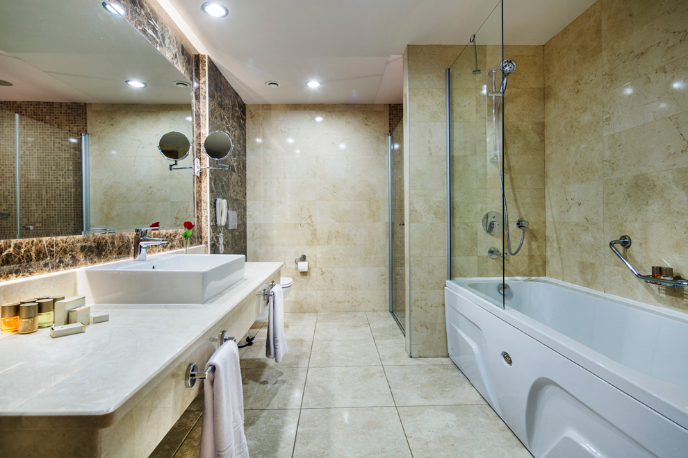 Всички стаи са оборудвани с климатик, телевизор, телефон, минибар (вода, безалкохолни напитки и бира – безплатно), сет за кафе/чай, сейф (безплатен), баня с душ/вана, сешоар. Ежедневно почистване на стаите и смяна на кърпите, смяна на спално бельо – 2 пъти седмично.