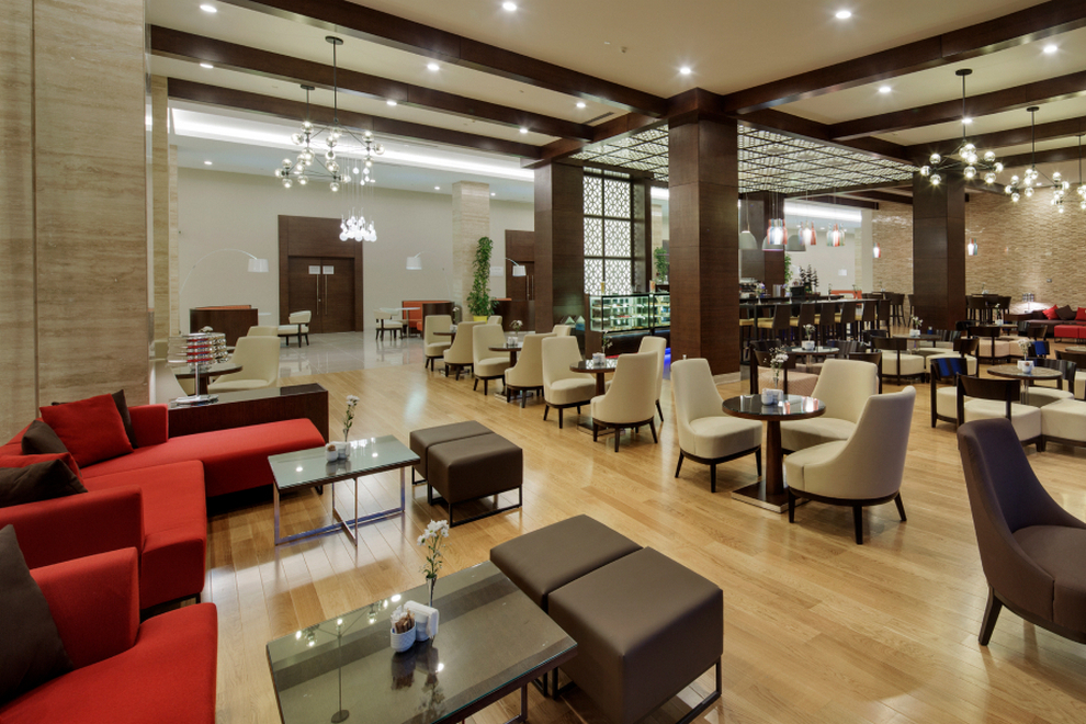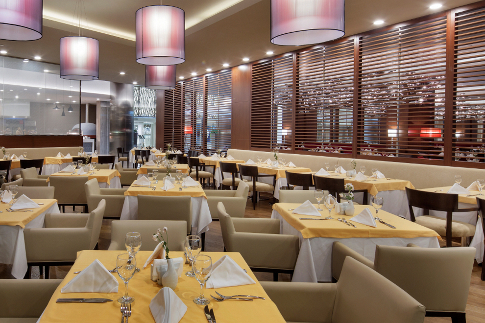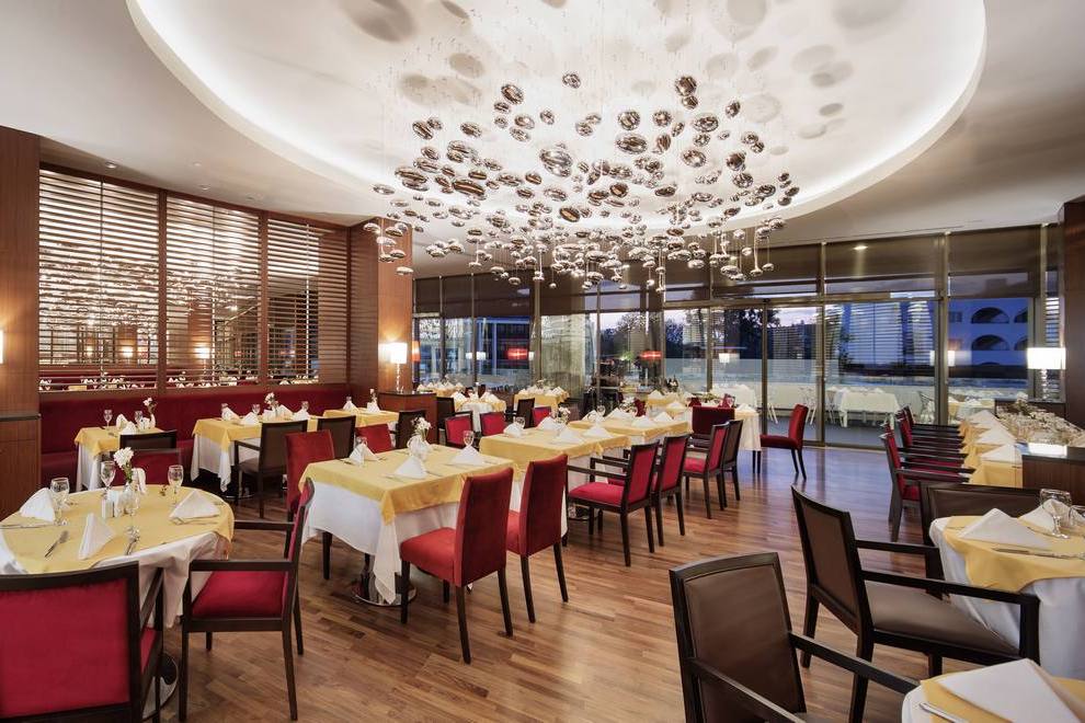 На разположение на гостите са основен ресторант и 3 а`ла карт ресторанта: рибен, турски и италиански. Освежаващи напитки и закуски се сервират в 6 бара.