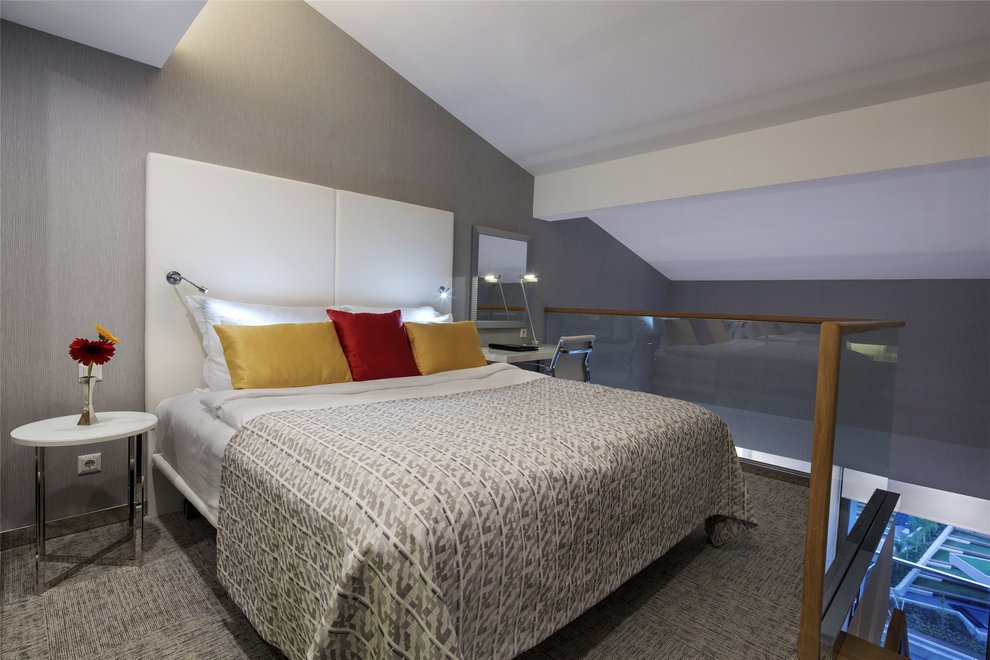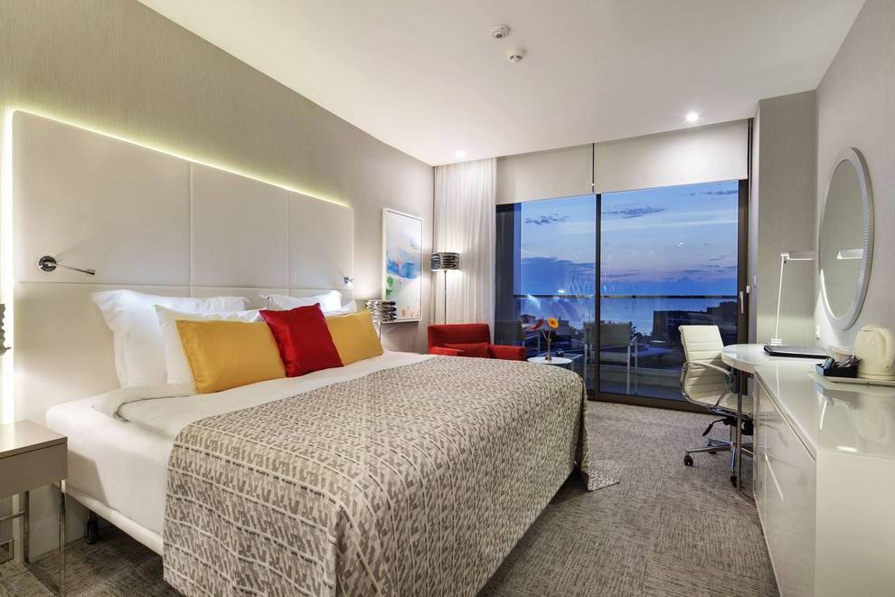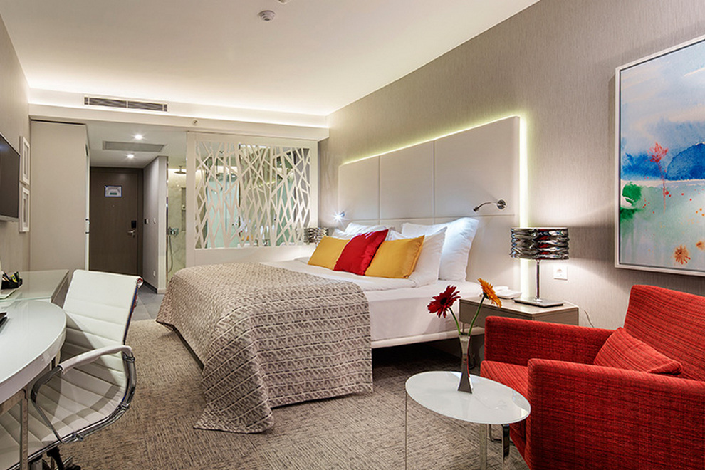 Хотелът се състои от един основен 5-етажен корпус и допълнителен 4-етажен корпус (асансьори има), в които са разпределени 374 климатизирани стаи: Standard Room Land View (26 кв.м), 42 Dublex Family Room Land View (45 кв.м), Standard Room Sea View (26 кв.м), Dublex Family Room Sea View (45 кв.м), 6 Junior Suite (37 кв.м), 13 Swim Up Room (26 кв.м) и Suite Room (48 кв.м). Стаите са оборудвани с телефон, телевизор, минибар, сейф, баня с вана/душ, сешоар, тоалетни принадлежности, Wi-Fi, балкон. Ежедневно почистване на стаите, смяна на спалното бельо на всеки четири дни.