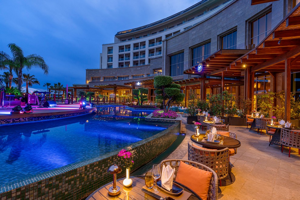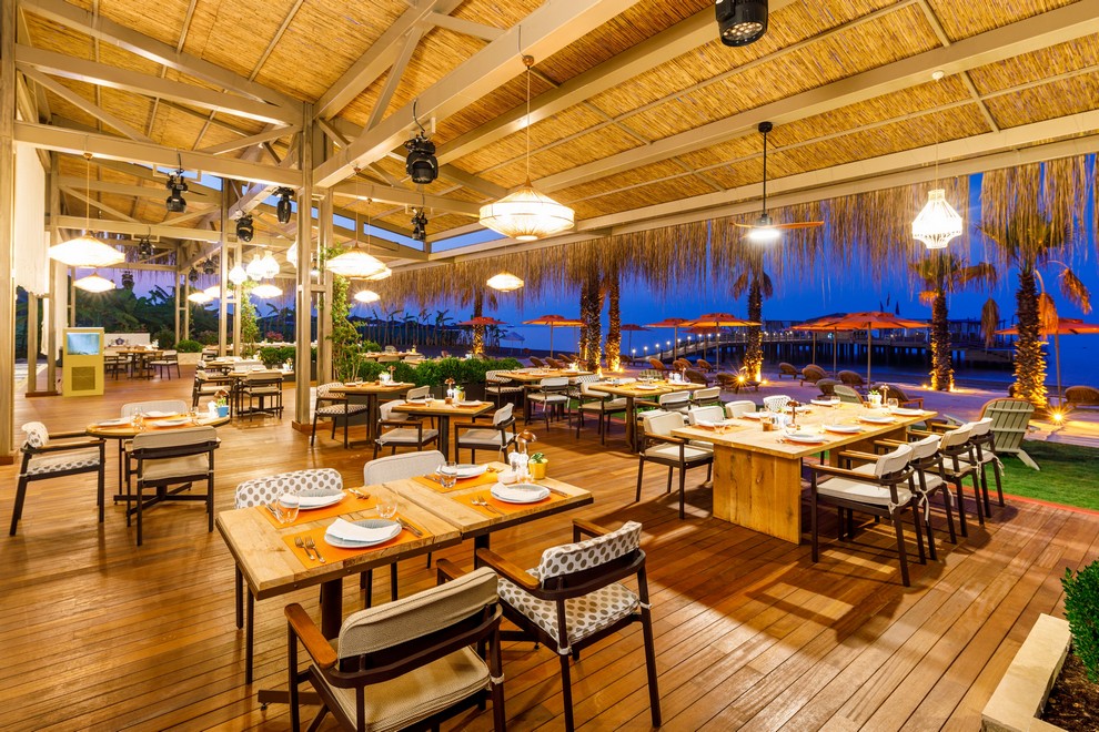 На разположние на гостите са основен ресторант, 5 а`ла карт ресторанта (ливански, италиански, азиатски, интернационален, средиземноморски), 9 бара. Ол инклузив пакетът включва закуска, обяд и вечеря всеки ден. А`ла карт ресторантите сервират разнообразни деликатеси от традиционната турска и международната кухня. В баровете на място се предлагат алкохолни и безалкохолни напитки.
