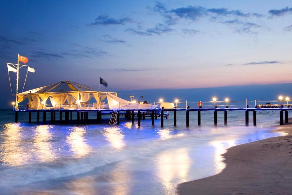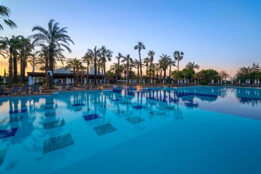 Собствен пясъчен плаж с кей и бар на плажа. На разположение на гостите са 3 открити басейна (неотопляеми, затворени през зимата): главен басейн, 1557 кв.м, релакс басейн, 744 кв.м, открит басейн Carpe Diem Spa, 50 кв.м, езерце (декоративно). 2 закрити басейна, отопляеми през зимата, 137 и 60 кв.м. Аквапарк басейн (отопляем през зимата), 227 кв.м. 4 водни пързалки (неотопляеми, затворени през зимата), 10:00 - 12:00ч. /14:00 - 16:00 ч. На плажа и при басейна чадъри, шезлонги, матраци, плажни кърпи се предоставят безплатно.