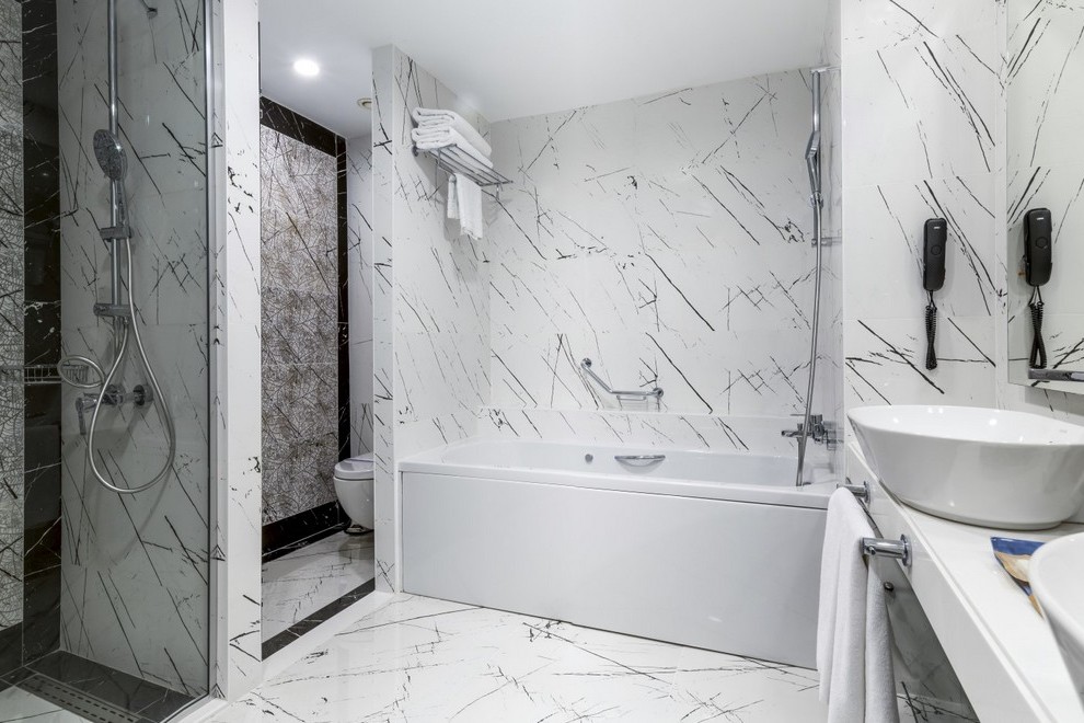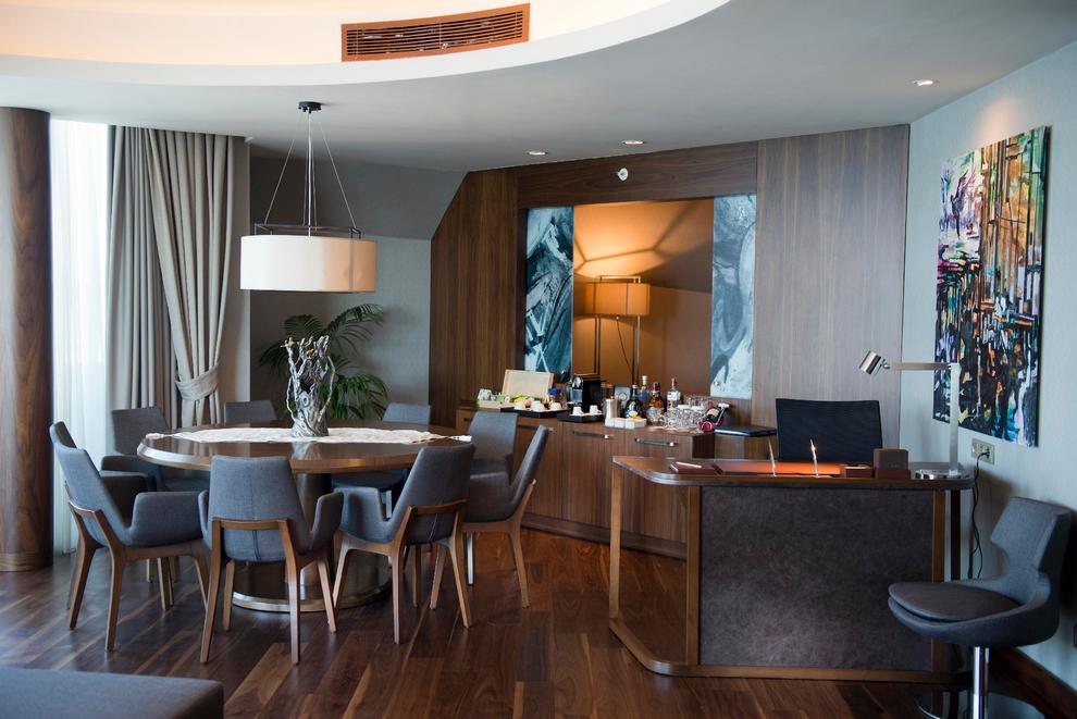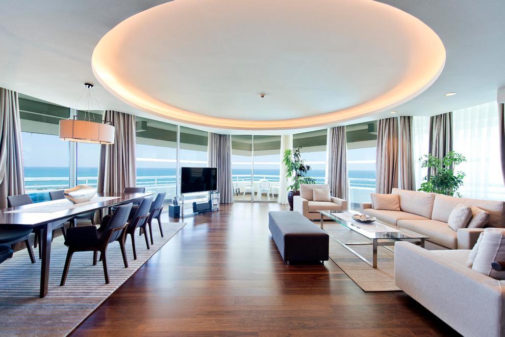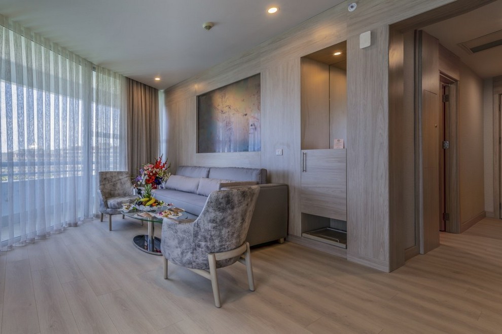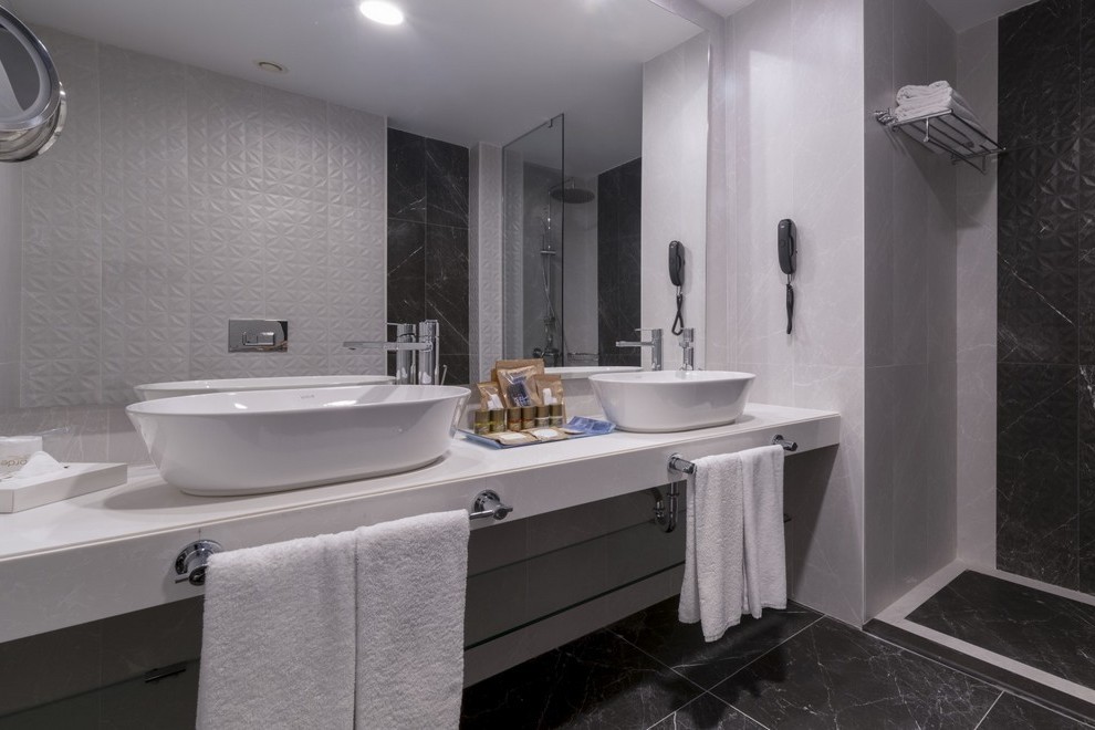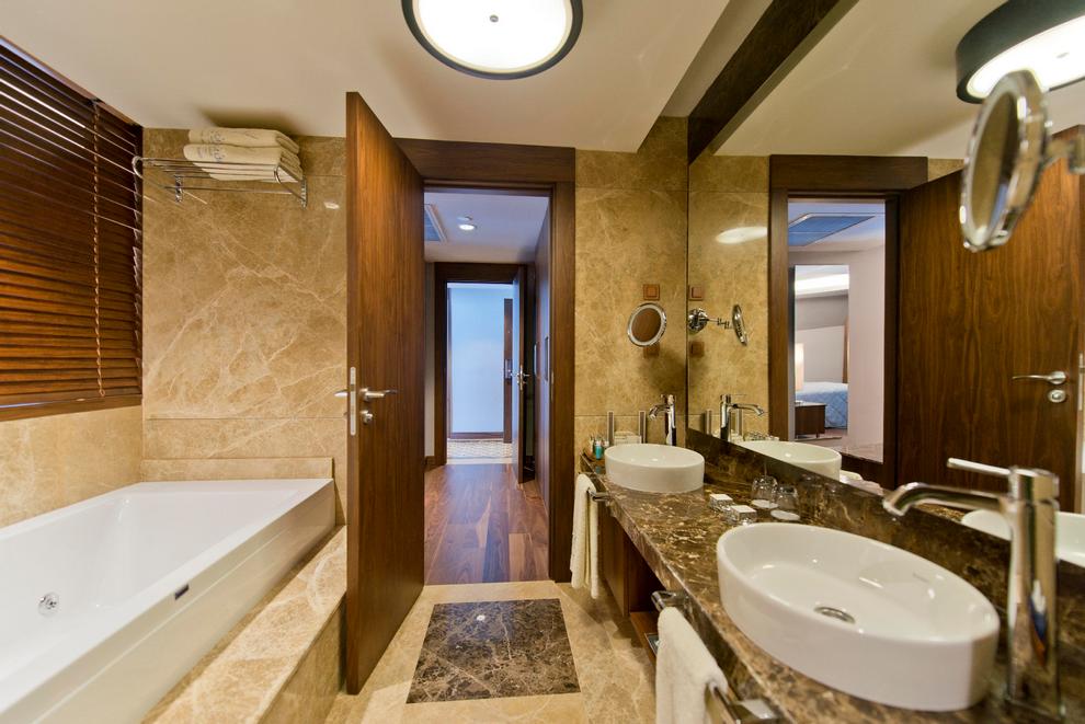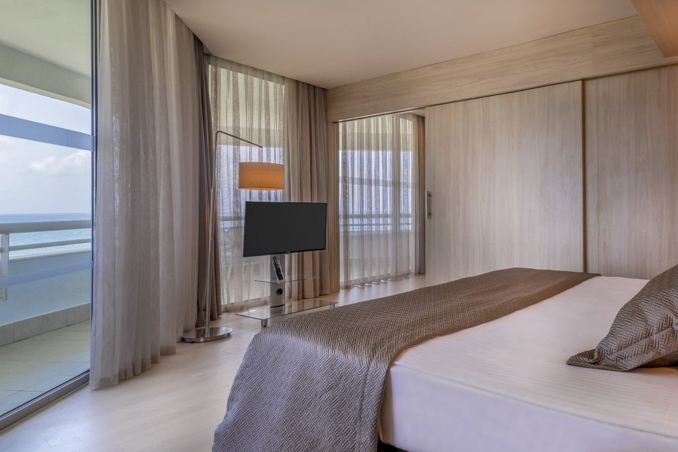 Хотелът се състои от една 7-етажта сграда (5 асансьора), в която са разпределени 401 климатизирани стаи: 6 Deluxe Family Suite (55 кв.м), 19 Deluxe Junior Suite (43 кв.м), 16 Deluxe Family Doublex Room (47 кв.м), 2 Deluxe Royal Suite (81 кв.м), 4 Deluxe Grand Suite (61 кв.м), 67 Deluxe Land View (28 кв.м) и 263 Deluxe Sea View (28 кв.м). Всички стаи са оборудвани с телефон, сателитна телевизия, минибар, машина за кафе Nespresso, сейф, ютия и дъска за гладене, баня с вана/душ, сешоар, безплатни тоалетни принадлежности, кантар, Wi-Fi . Почистване на стаите - всеки ден. Смяна на спално бельо - на всеки два дни.