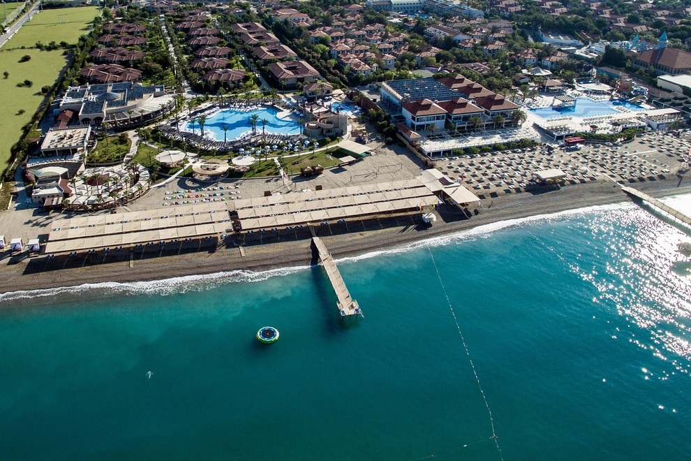 Хотелът представлява комплекс от двуетажни бунгала, разположени на красива, зелена и просторна територия. Намира се на брега на морето в село Къзълач, на 12 км от град Манавгат, на 70 км от летище Анталия. Отличен вариант за семейна почивка с деца.