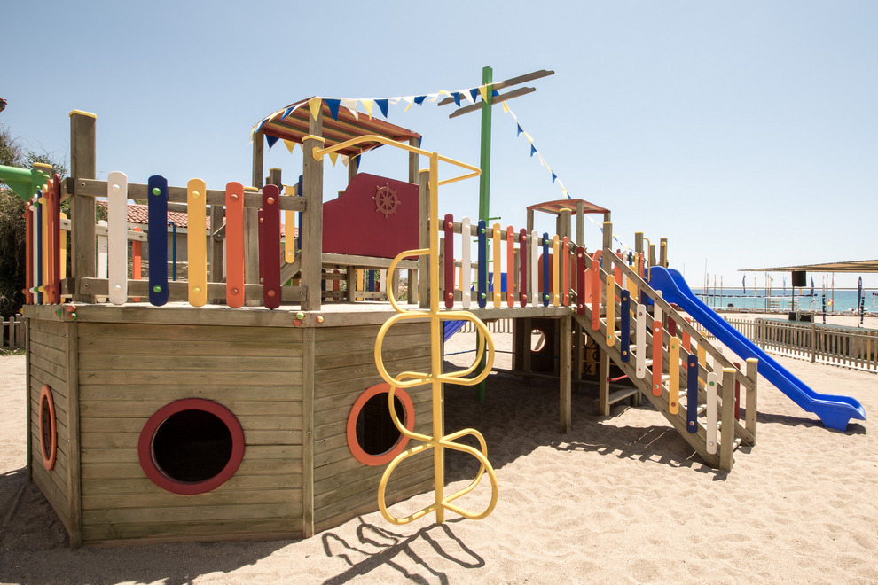 Собствен пясъчно-чакълест плаж, дълъг 200 м. На разположение на гостите има голям външен басейн с 5 пързалки.