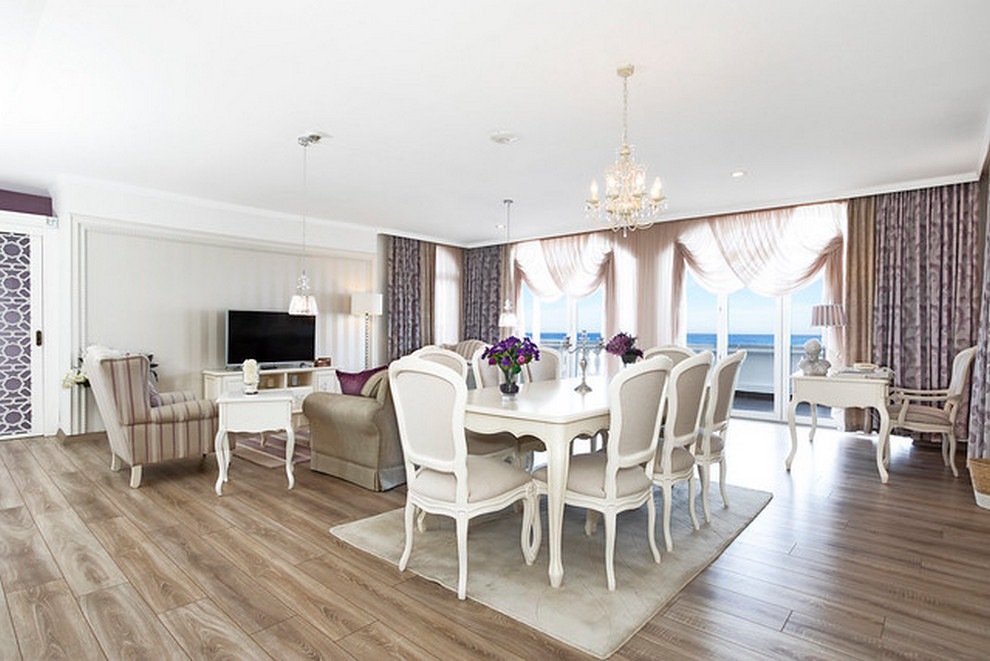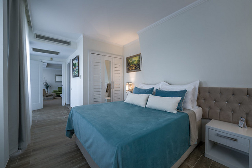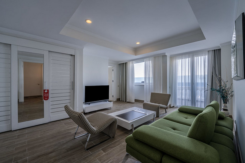1 Amsterdam Suite с изглед море, 2 спални, 2 бани и тоалетни, 3 телевизора, 1 хол, тераса, площ 96 кв.м, предлагат се VIP обслужване и VIP посрещане