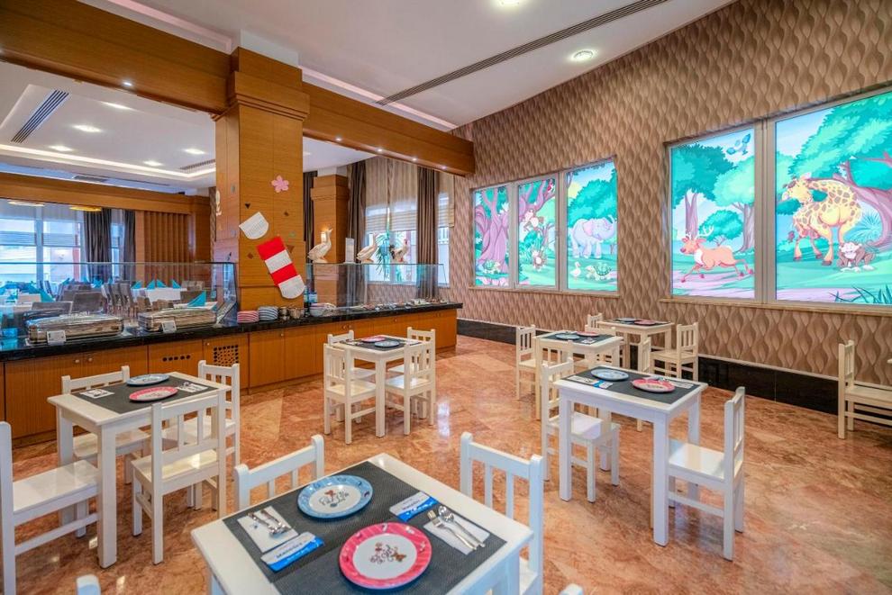 На разположение на гостите са основен ресторант (диетично меню, вегетарианско меню) и 3 а`ла карт ресторанта: мексикански, средиземноморски и турски (с предварително записване, за едноседмичен престой посещението на един ресторант един път е безплатно). Има също снек ресторант, гьозлеме кът, сладкарница, baby corner (24 часа – бебешка храна, йогурт и млечни напитки) и кът за кафе. Разнообразни напитки се поднасят в 7 бара (едният от които работи денонощно).
