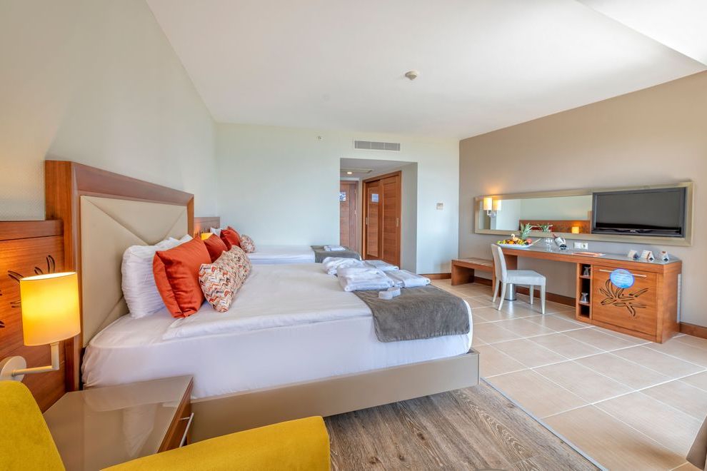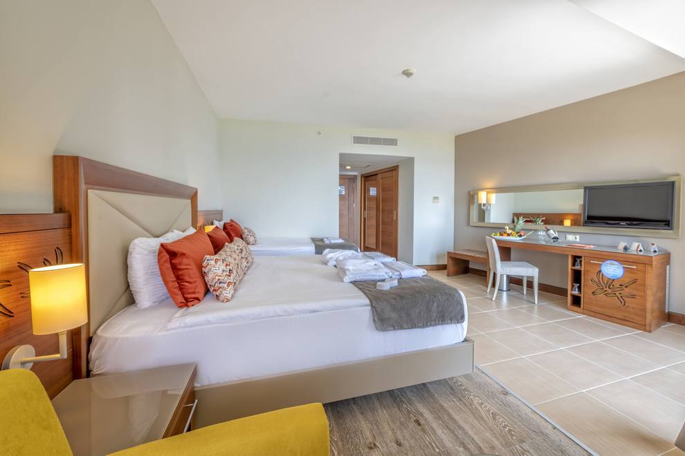 Хотелът е разполага с красива зелена и добре поддържана територия посреща гостите си в 290 стаи. На разположение на гостите са един основен ресторант, 3 а`ла карт ресторанта: турски, средиземноморски и мексикански, снекресторант и 6 бара. Собствен пясъчен плаж, открити басейни за възрастни и деца с пързалки, закрит басейн и СПА център. Много възможности за активен отдих, дневна и вечерна анимация, амфитеатър, мминиклуб (4-12 г.), интернет в стаите и всички общи територии, паркинг, конферентни зали, магазини, пералня и химическо чистене, лекарски услуги и др.