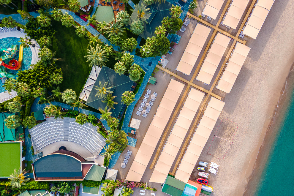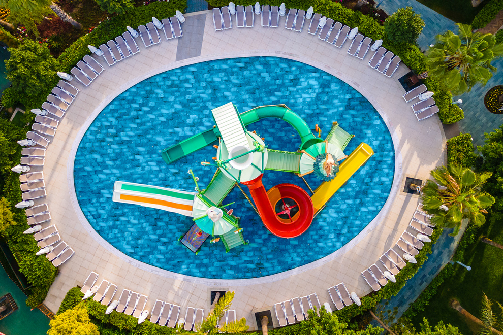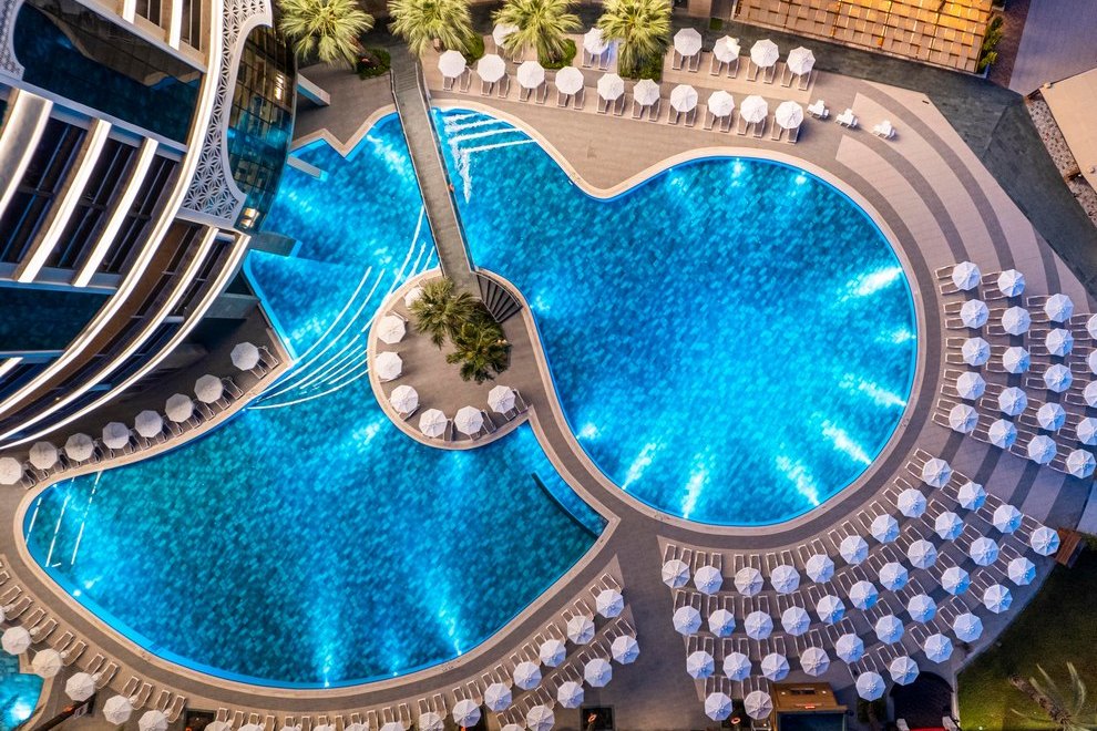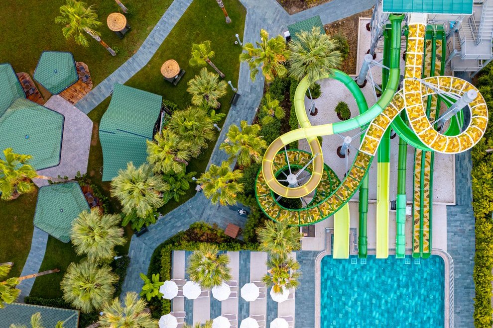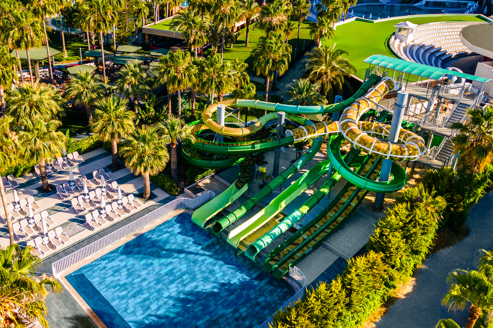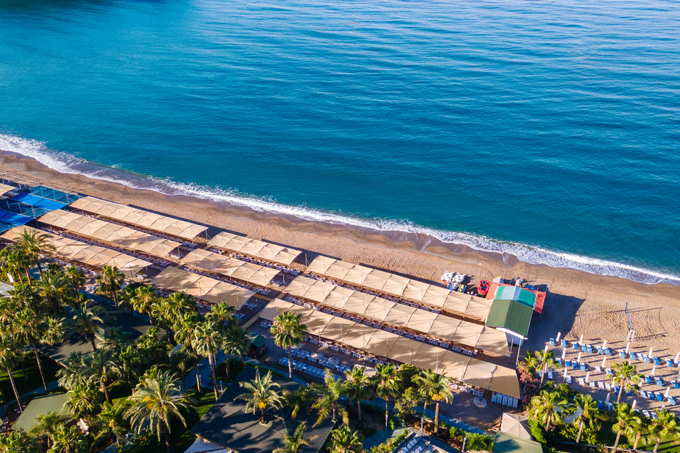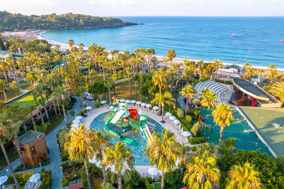 Собствен пясъчен плаж. Безплатен бар на плажа. Има също открит басейн, закрит басейн, 3 водни пързалки. При басейна и на плажа чадъри, шезлонги, матраци, плажни кърпи се предоставят безплатно.