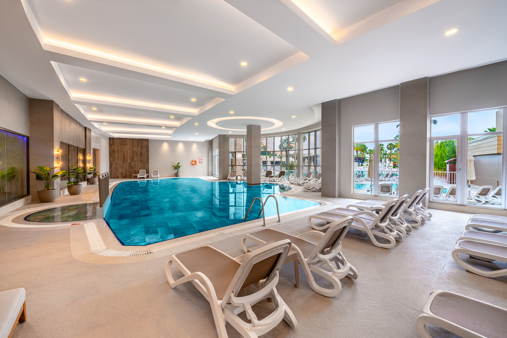 Хотелът е разполага с красива зелена и добре поддържана територия посреща гостите си в 290 стаи. На разположение на гостите са един основен ресторант, 3 а`ла карт ресторанта: турски, средиземноморски и мексикански, снекресторант и 6 бара. Собствен пясъчен плаж, открити басейни за възрастни и деца с пързалки, закрит басейн и СПА център. Много възможности за активен отдих, дневна и вечерна анимация, амфитеатър, мминиклуб (4-12 г.), интернет в стаите и всички общи територии, паркинг, конферентни зали, магазини, пералня и химическо чистене, лекарски услуги и др.