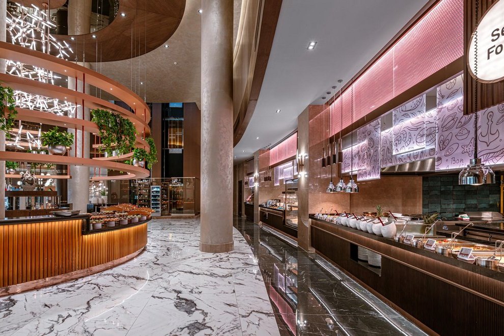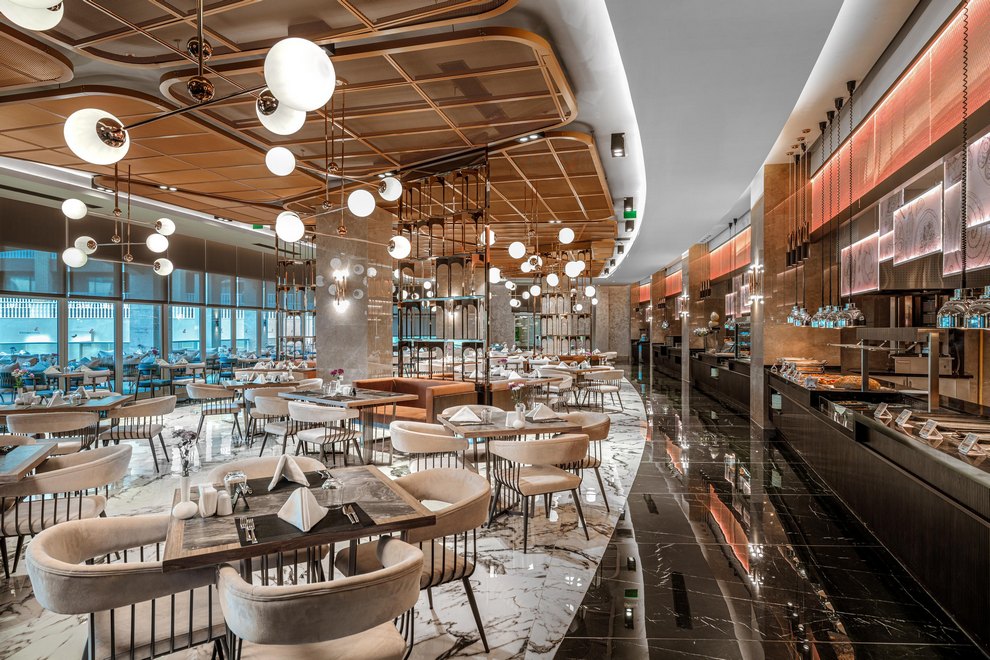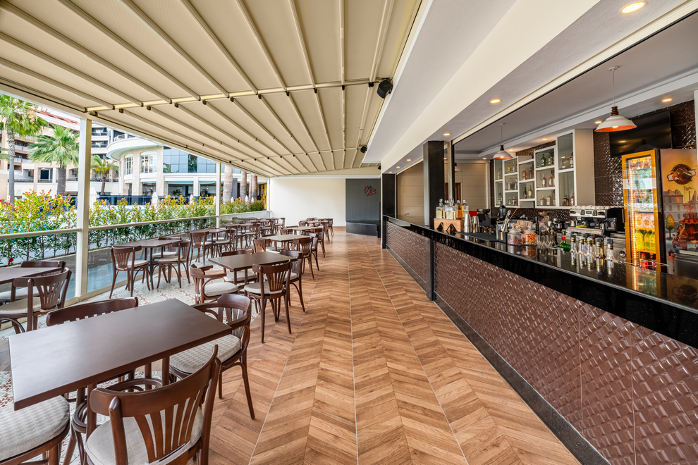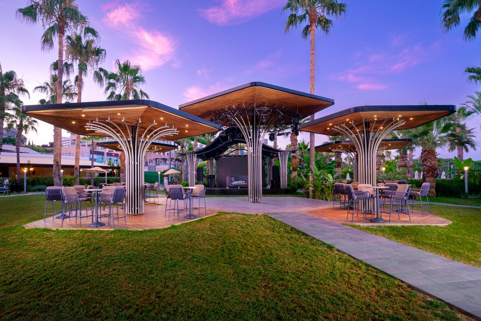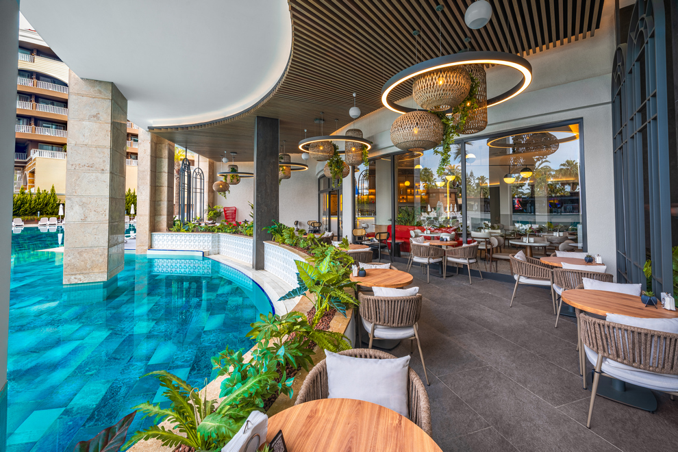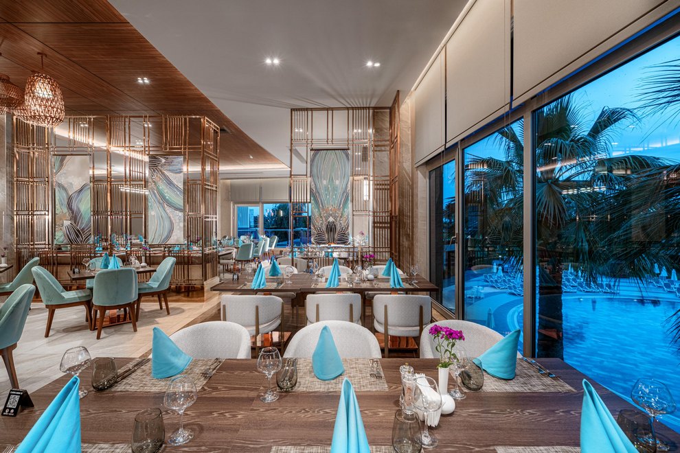 На разположение на гостите са основен ресторант (диетично меню, вегетарианско меню) и 3 а`ла карт ресторанта: мексикански, средиземноморски и турски (с предварително записване, за едноседмичен престой посещението на един ресторант един път е безплатно). Има също снек ресторант, гьозлеме кът, сладкарница, baby corner (24 часа – бебешка храна, йогурт и млечни напитки) и кът за кафе. Разнообразни напитки се поднасят в 7 бара (едният от които работи денонощно).
