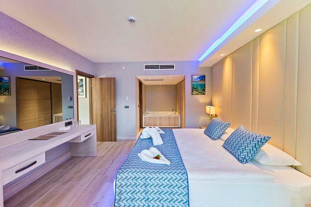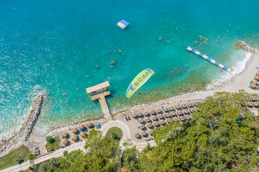 Собствен пясъчно-чакълест плаж (16+), дълъг 300 м. На разположение на гостите са още 6 открити басейна (неотопляеми), 3 от които се намират на територията на Liberty Lykia. 1 вътрешен басейн 85 кв.м, отопляем през април в зависимост от метеорологичните условия, работно време 08:00-18:00ч. Водният парк се намира на територията на Liberty Lykia.