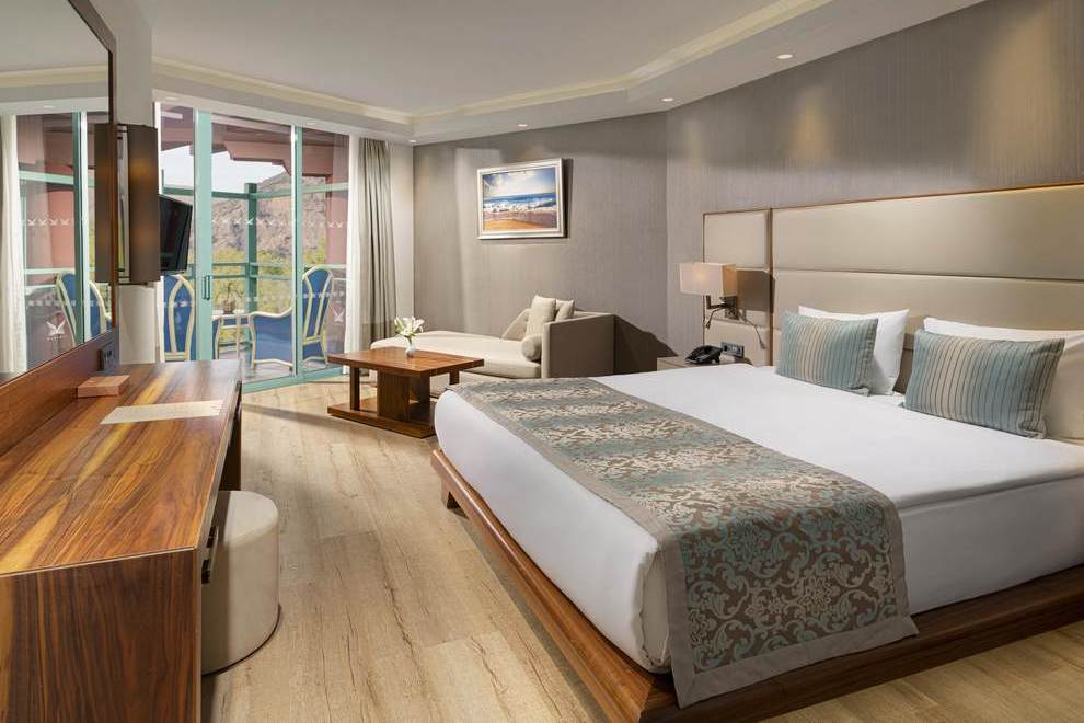 На разположение на гостите са основен ресторант Myros restaurant, Kalynda Snack House, отворен за закуски в часовете: 15:00-19:00 ч ./23:00-07:00 ч. и седем а`ла карт ресторанта: Balbura: италианска кухня, Balbura Steak House: стек ресторант, Soura: средиземноморска кухня, Sarpedon: рибен ресторант, Pinara: туреска кухня, Phaselis Modern Asya Restaurant: азиатска кухня, Teppanyaki restaurant: японска кухня.
