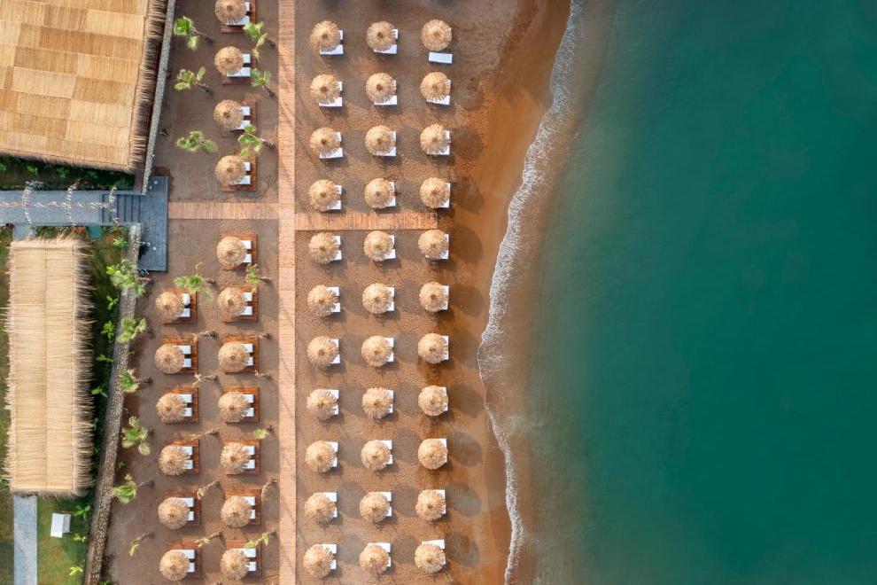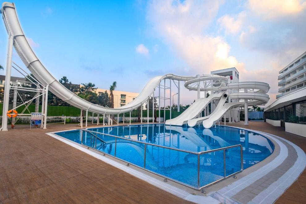Собствен пясъчно-чакълест плаж, дълъг 100 м, и платформа. Два открити басейна - 820 и 120 кв.м, (4 пързалки) и един закрит басейн - 150 кв.м. Чадъри, шезлонги и матраци на плажа и при басейна се предоставят безплатно.